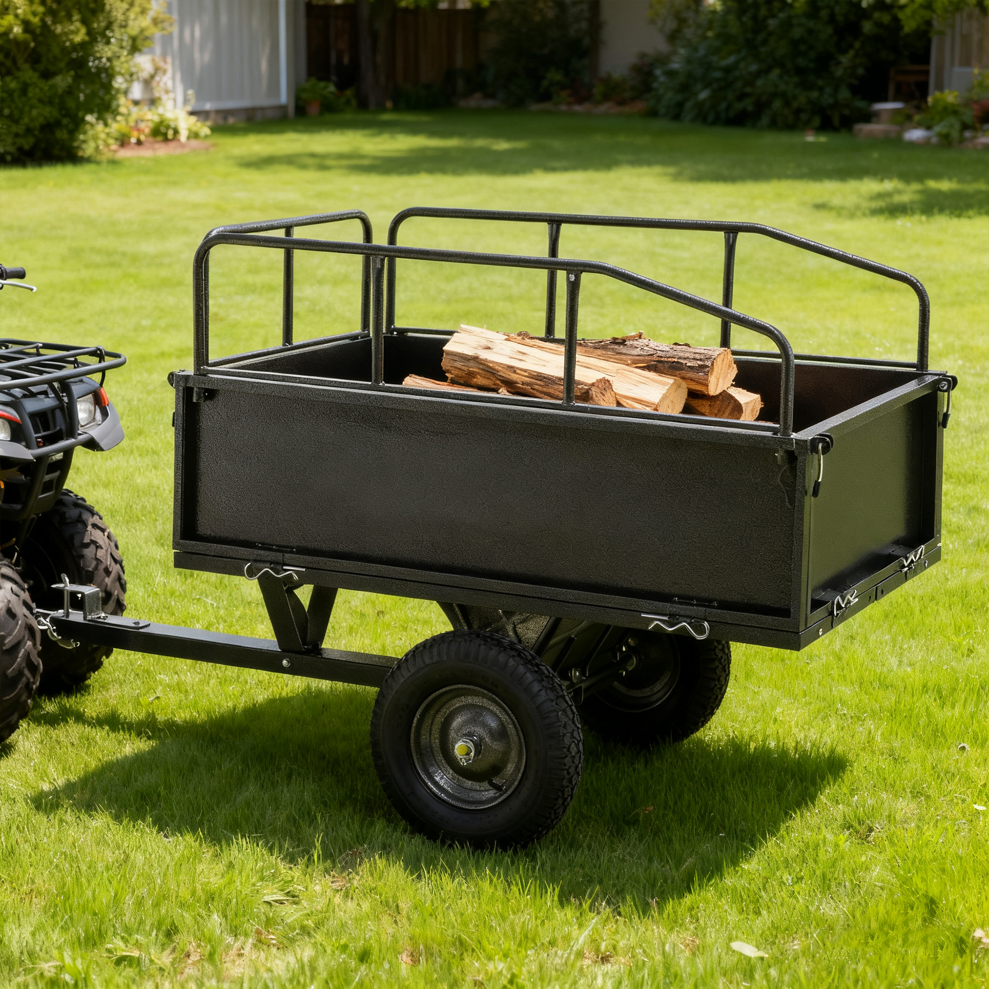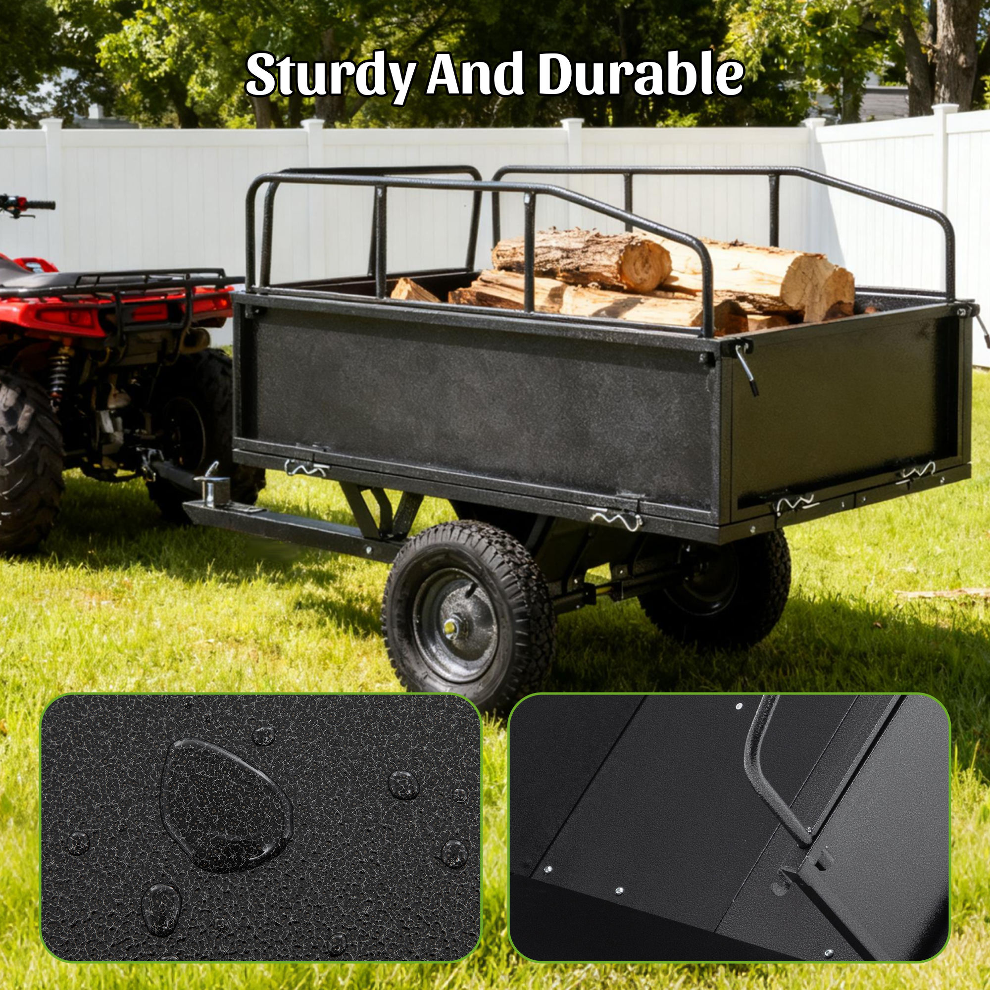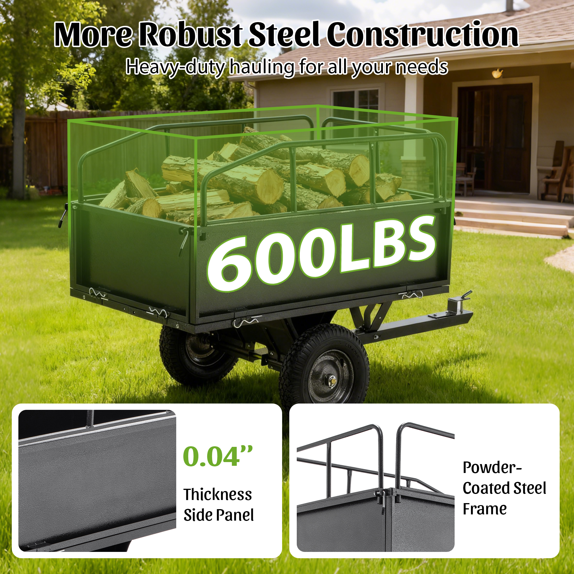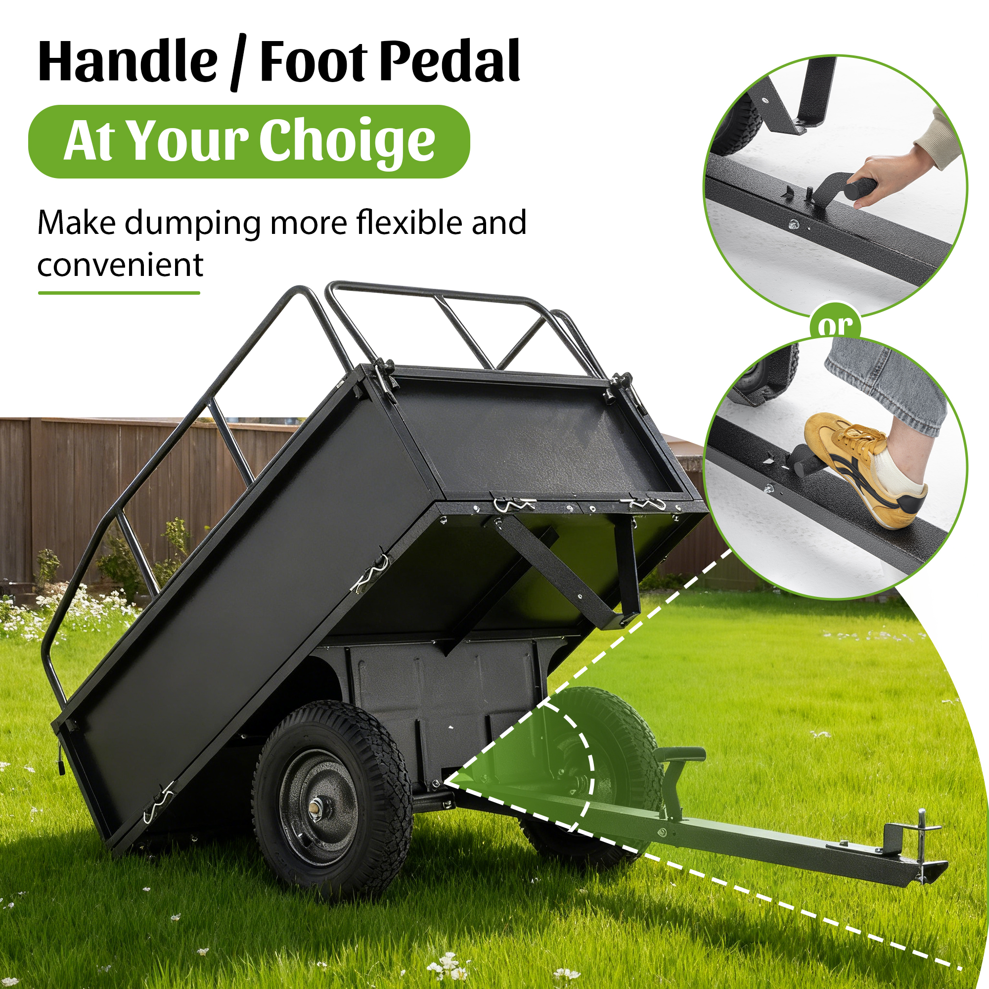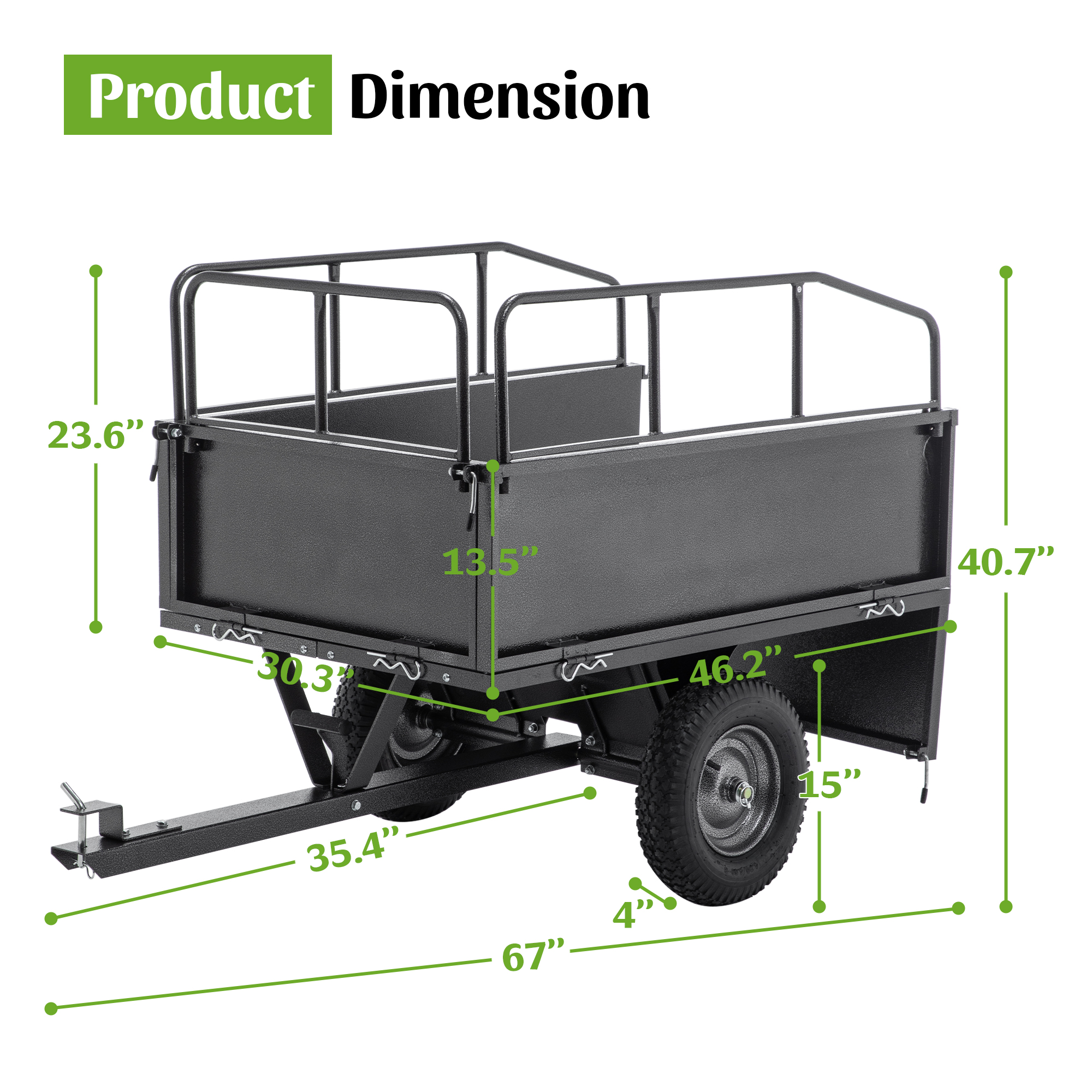Product Name:600LBS Heavy Duty Steel Dump Cart Trailer, 17 Cu.Ft. Tow Behind Hauling & Dumping Wagon for ATV, Lawn Tractor and Garden with 16" Tires