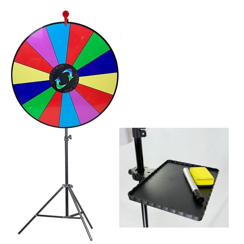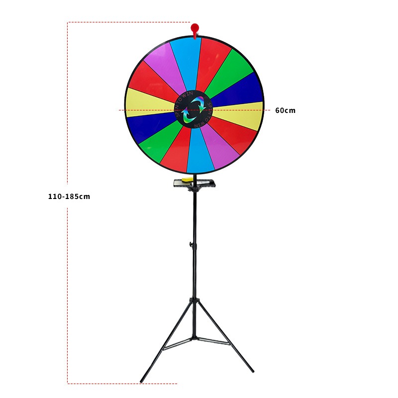 Portable and Space-Saving: Whether in-store or at a trade show, our prize wheel spinner with stand is easy to transport and set up quickly. Its lightweight design and compact storage requirements allow for fun anytime, anywhere.