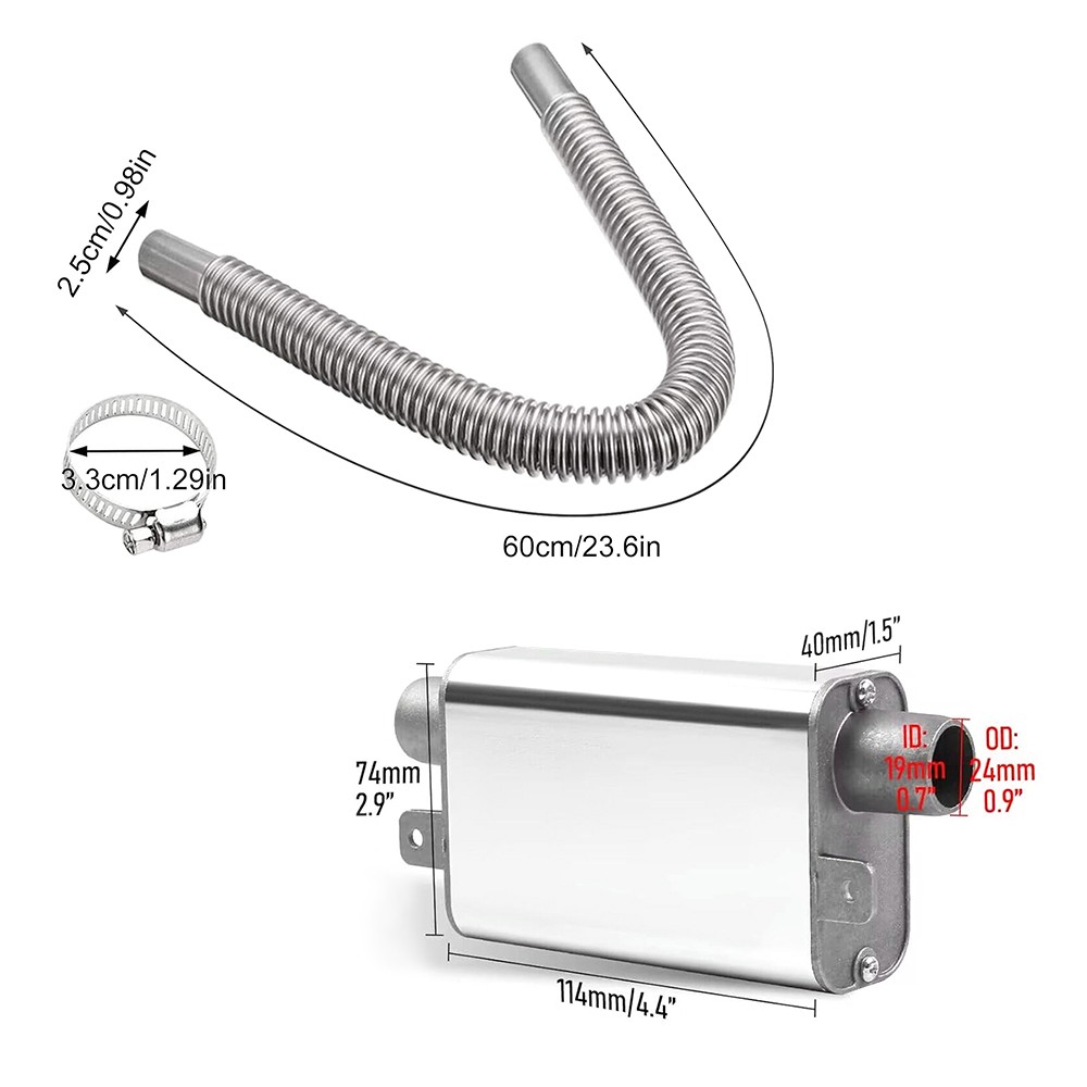 60CM 24MM SILENCER & EXHAUST PIPE FOR CAR AIR DIESEL PARKING HEATER UPGRADED UK