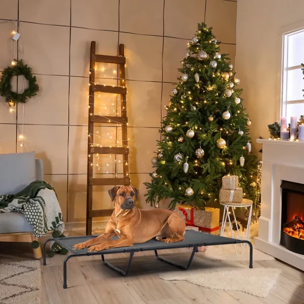 High-quality structure: Large elevated dog bed. Composed of powder-coated steel and Textilene mesh. Breathable fabric promotes air circulation on all sides of the bed, keeping your dog cool and comfortable all year long. The thickened steel material can hold up to 175 pounds, making it suitable for most large dogs.The height is just right for dogs of all ages, from puppies to old.