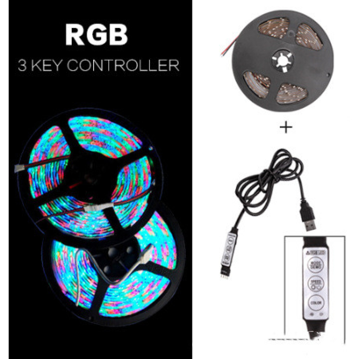 B: USB cable + 3 button controller(excluding light strips, only remote control)
