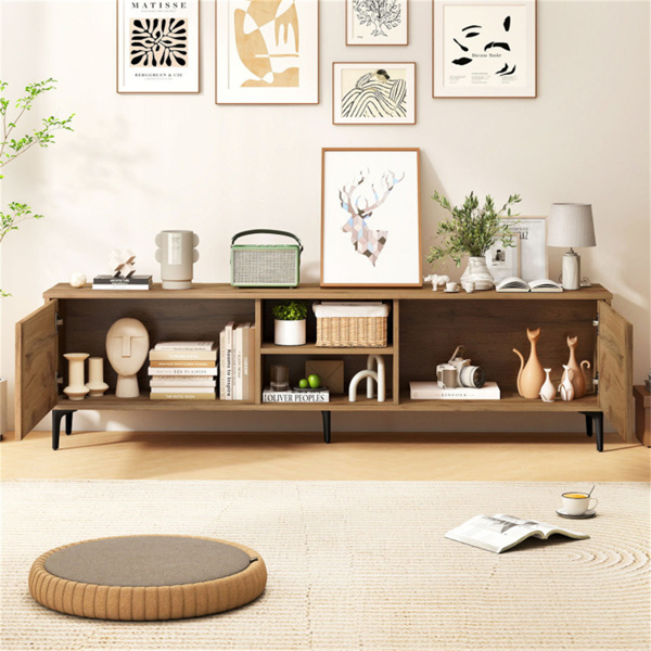 • Ample Storage & Display Space: Featuring 2 storage cabinets, this entertainment center provides concealed space for clutter-free organization. Additionally, 2 open shelves keep frequently used electronics within easy reach.