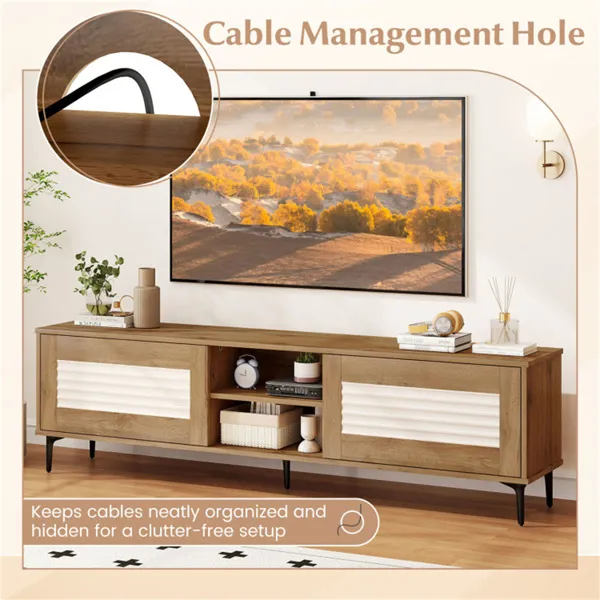 • Waveform Fluted Doors: Designed with distinctive waveform fluted doors, this media TV console table adds texture and visual interest, making the TV cabinet a focal point in any room. Beyond being a TV stand in the living room, it also functions as a storage cabinet.