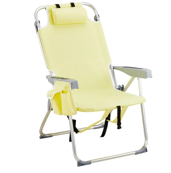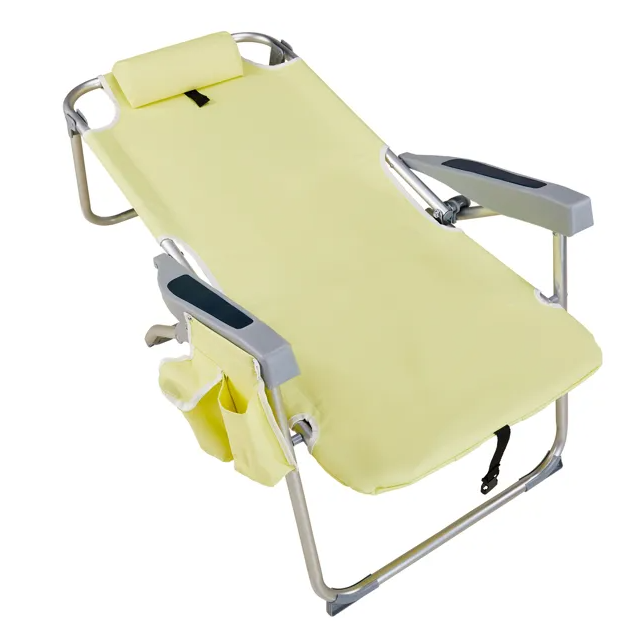 Get comfortable with this Folding beach Chair. It is an ideal solution for sitting and relaxing in comfort during outdoor activities. It is also a must-have for a sporting event, a picnic, a camping trip or even just to the backyard. The aluminum frame is not only light-weight, but also offers even greater sturdiness and stability to make it stand up to various conditions. In addition, the adjustable back with 5 positions to create better sitting feeling, and the extra storage space such as pouches on the back and side cup holder allow you to keeps the necessities right by your side. The beach chair is light-weight and easy to move so that it fits easily inside most vehicles for fast transport wherever you need.