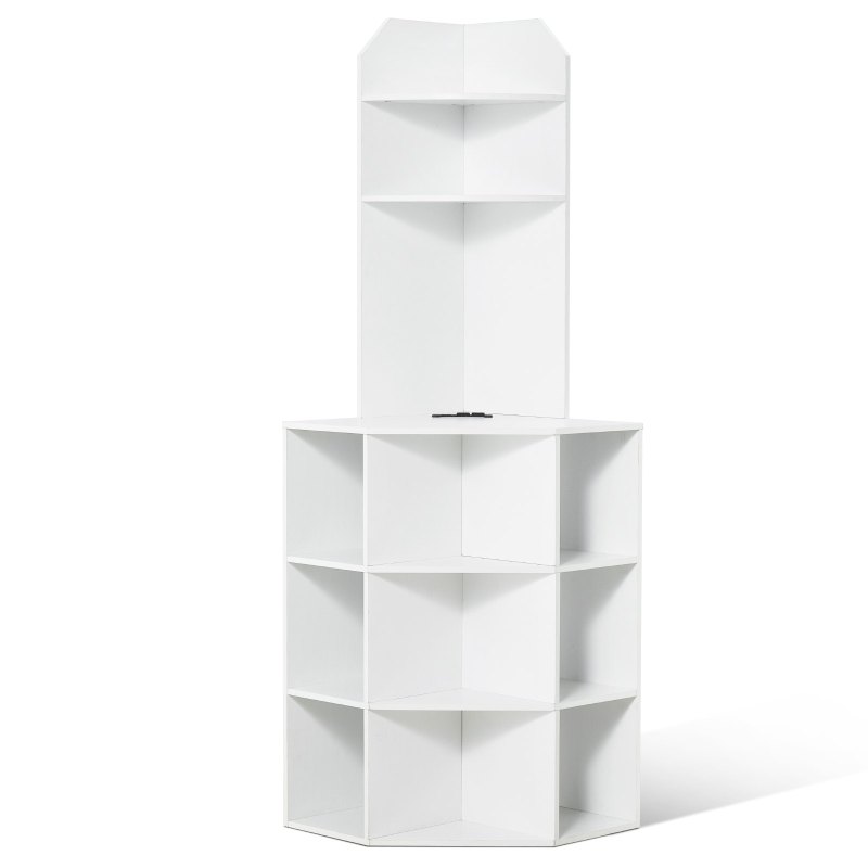 12-Compartment Organized Storage: Offering corner cabinet storage with 12 compartments, this piece keeps your headphones, books, decorative items, and more neatly organized. With adjustable shelves (0-55mm), you can easily customize the space to store dishes, bags, photo albums, and other essentials.