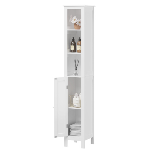 66.92 Inch High Bathroom Storage Cabinet with Adjustable Shelves, Slim 1 Door Detached Cabinet with Anti-Tip Function, Open Compartment, For Family, Small Space, Bathroom, Kitchen, Living Room, White