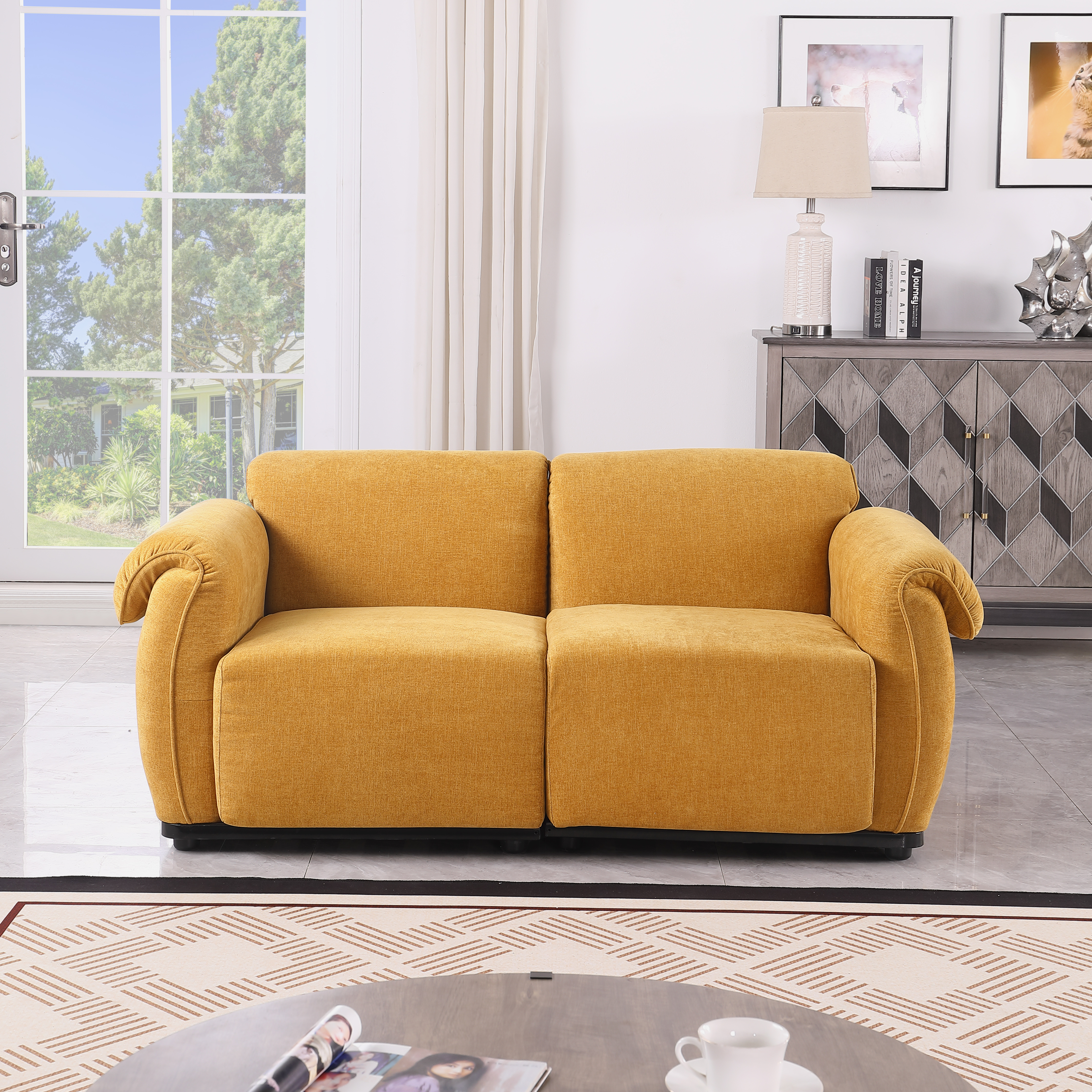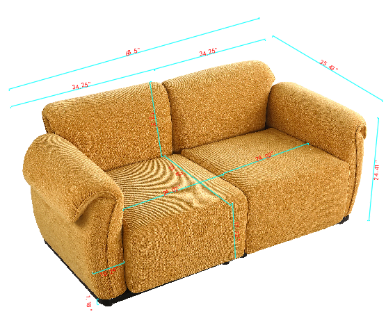 Product Name:68.5" length , Fashionable modular sofa, iron frame, chenille sofa, yellow, Suitable for living room, bedroom
