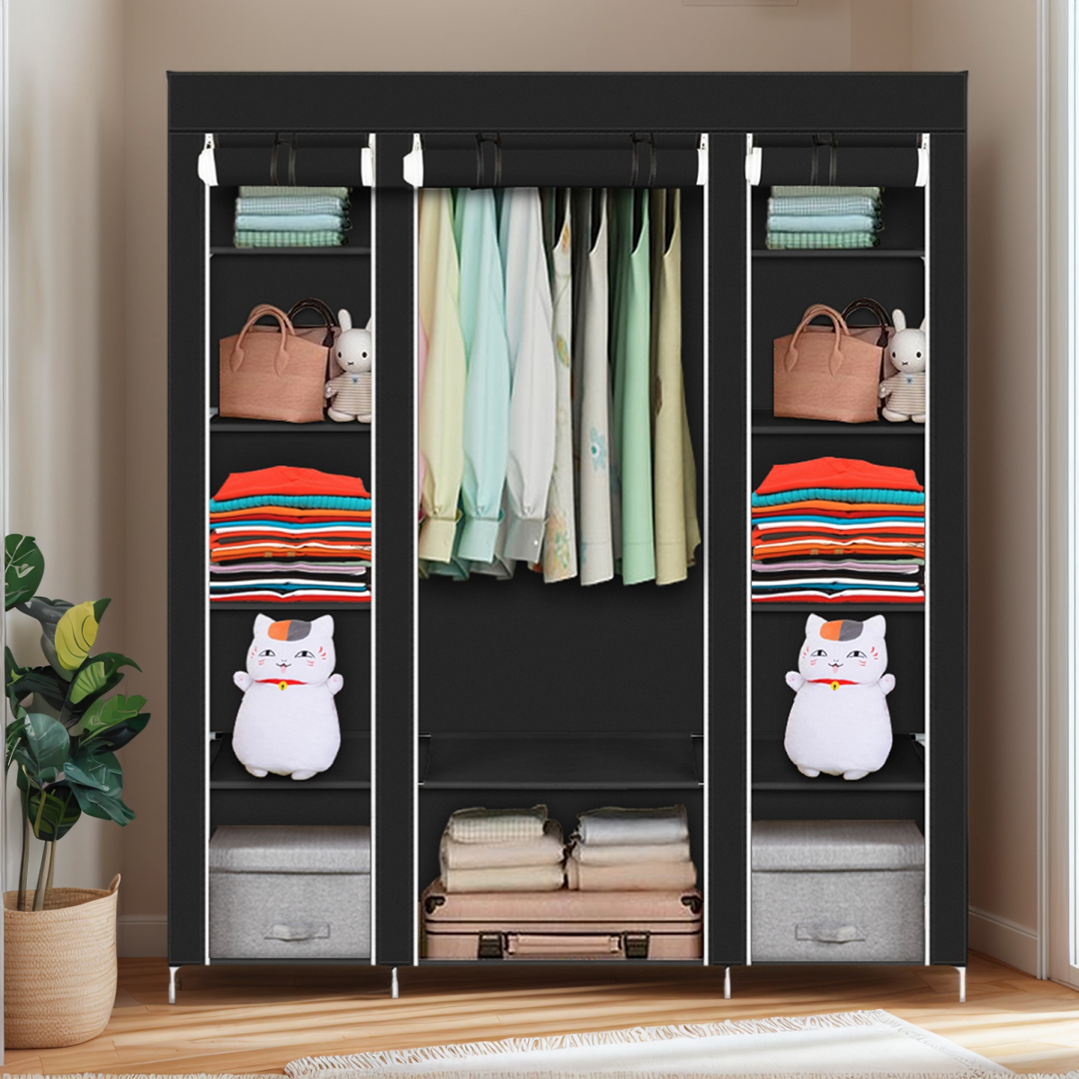 2. SPACE SAVING ORGANIZER:Great Size of 58”x 17” x 68 7/8”(147x44x174cm), Which Makes it Suitable for Organizing Your Small Rooms and Walk-in Closet.