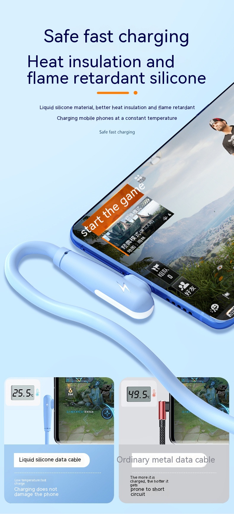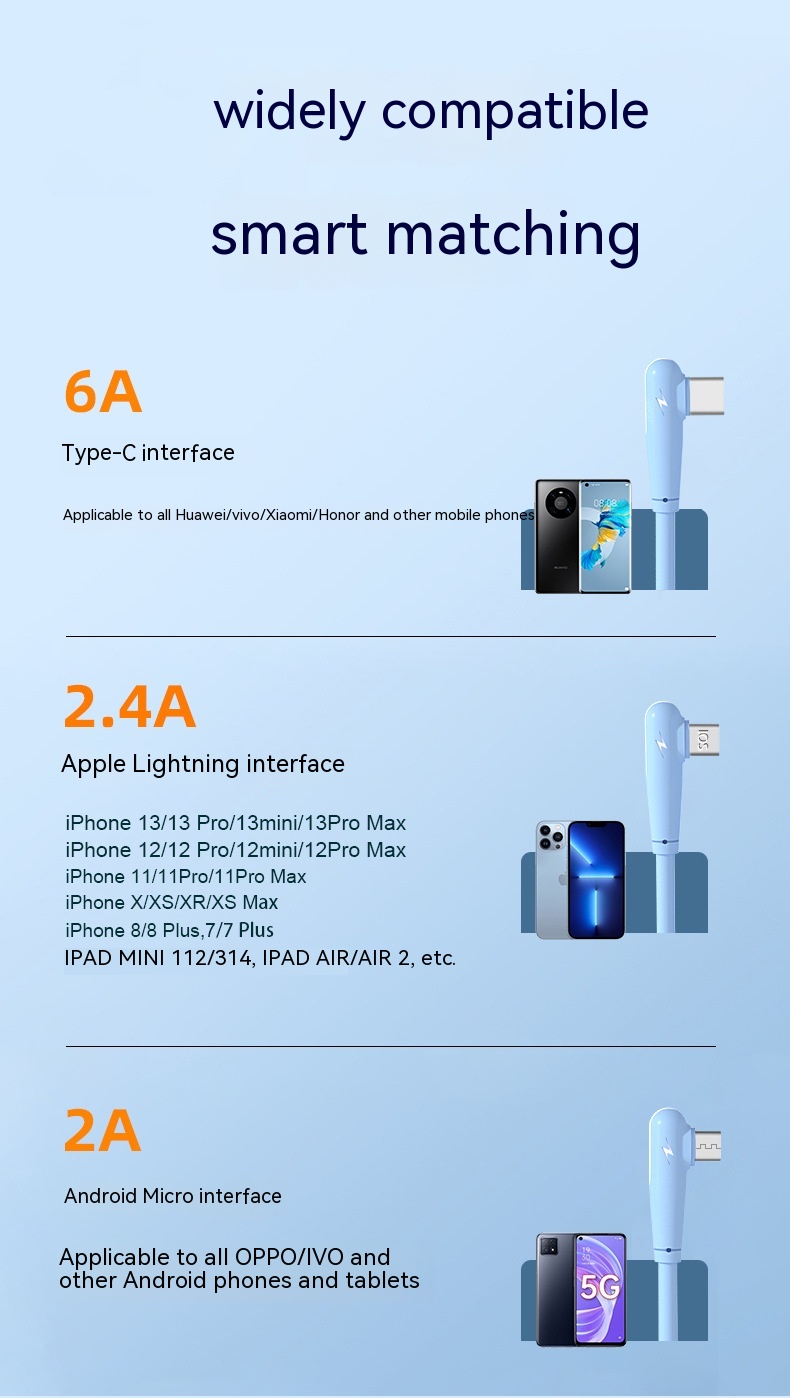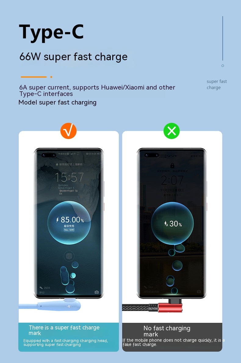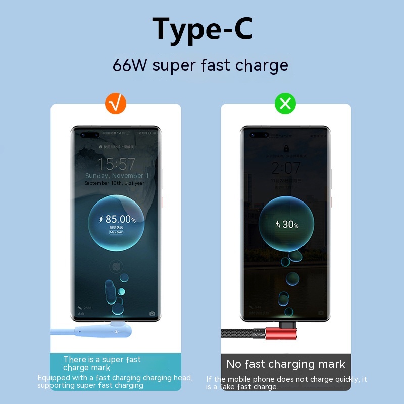 Features: fast charge, mobile game elbow USB cable