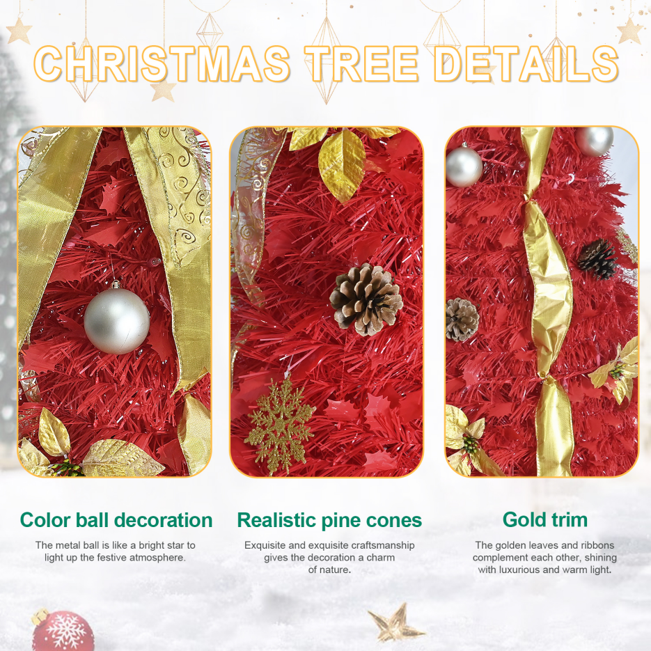 6FT UP Red Tree Artificial Full Christmas Tree Holiday Xmas