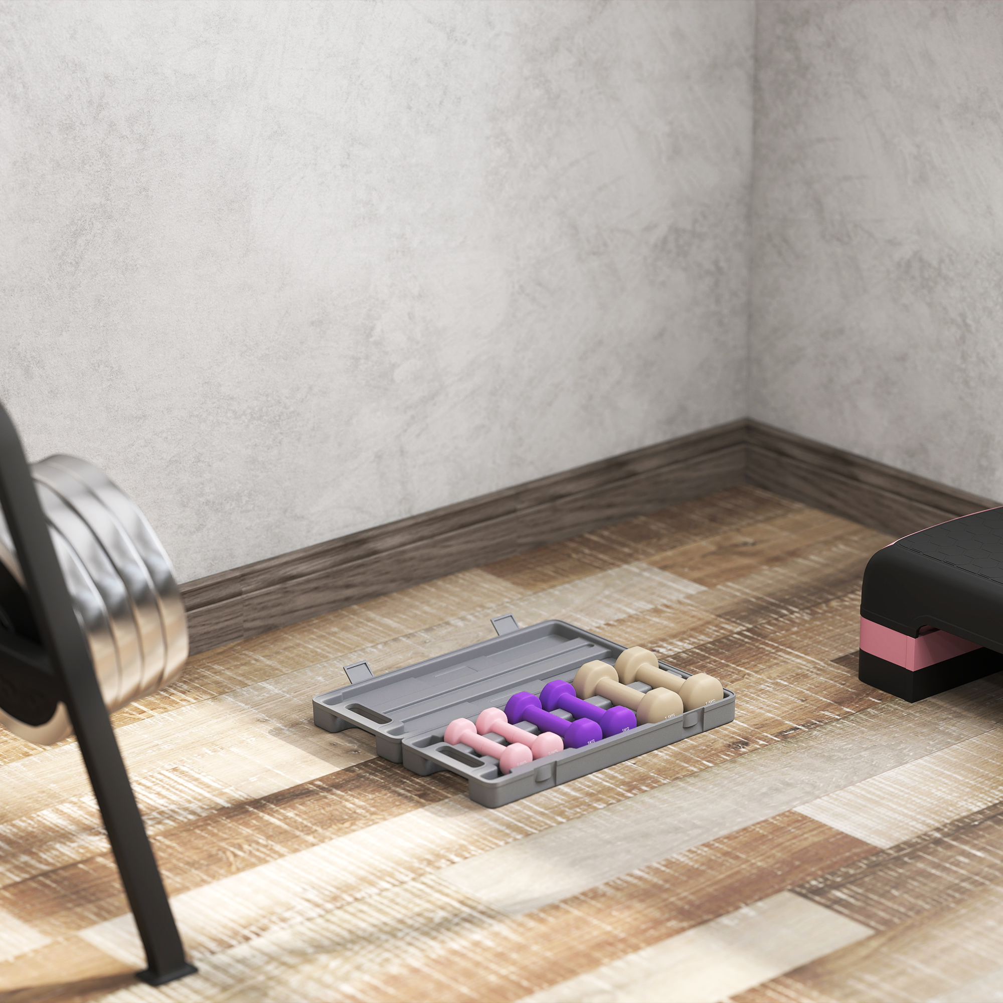 Stay active at home with our dumbbell set. With three pairs of dumbbells, weighing 0.5kg, 1kg and 1.5kg respectively, it's suitable for lifting, cardio, yoga, squats, get-ups and more, satisfying your different training needs. Bright colours and easy-to-read numbers, they're easy to organise for an efficient workout. Plus, it comes with a convenient suitcase for easy storage and travel. Never miss a session with this adjustable dubbells pair, maximising your fitness potential.