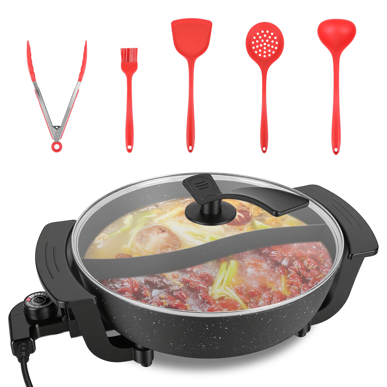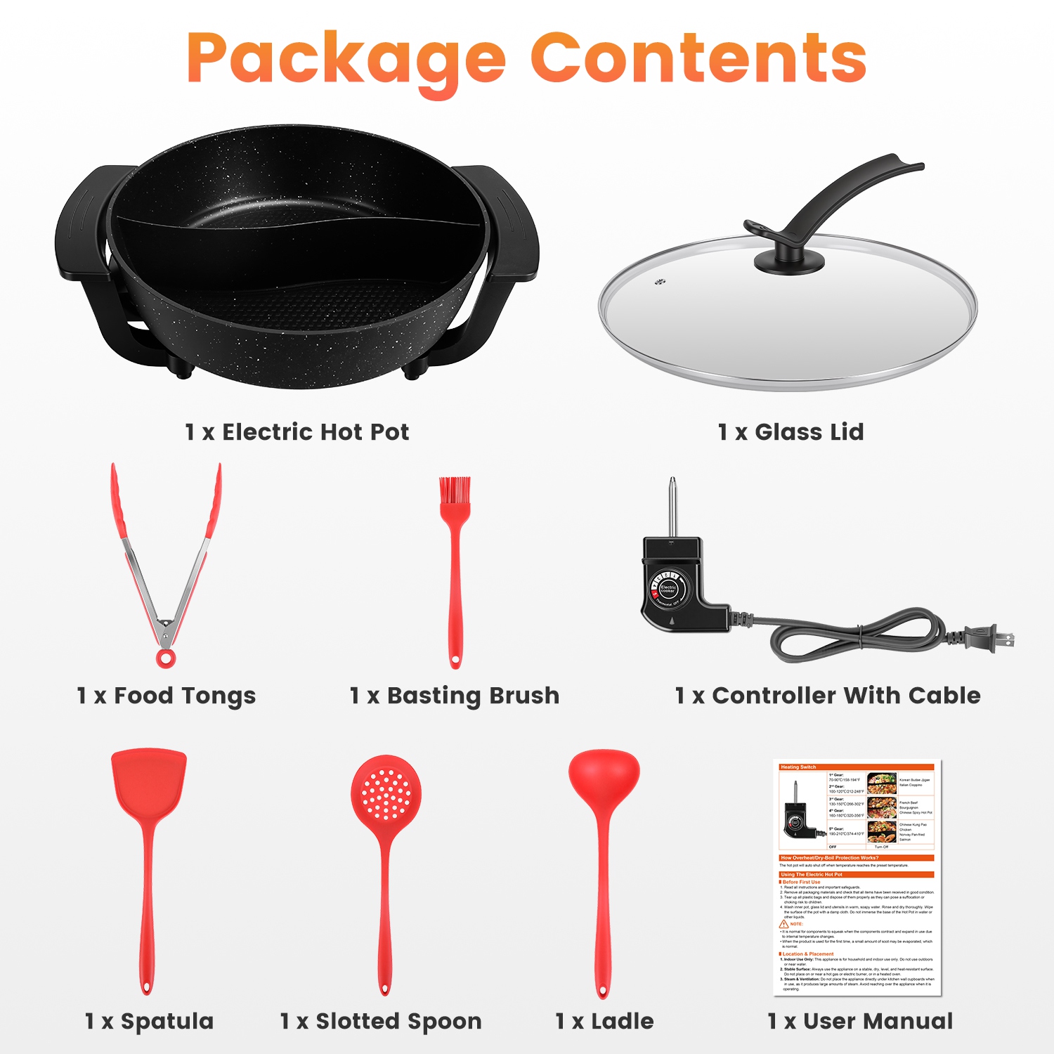 *Complete Set of Cooking Accessories Included*:This hot pot comes with all the necessary accessories to enhance your cooking experience,including a spatula,ladle,slotted spoon,food tongs,basting brush,and more. Whether you're a beginner or an experienced cook,this set has everything you need for a seamless,enjoyable cooking process.