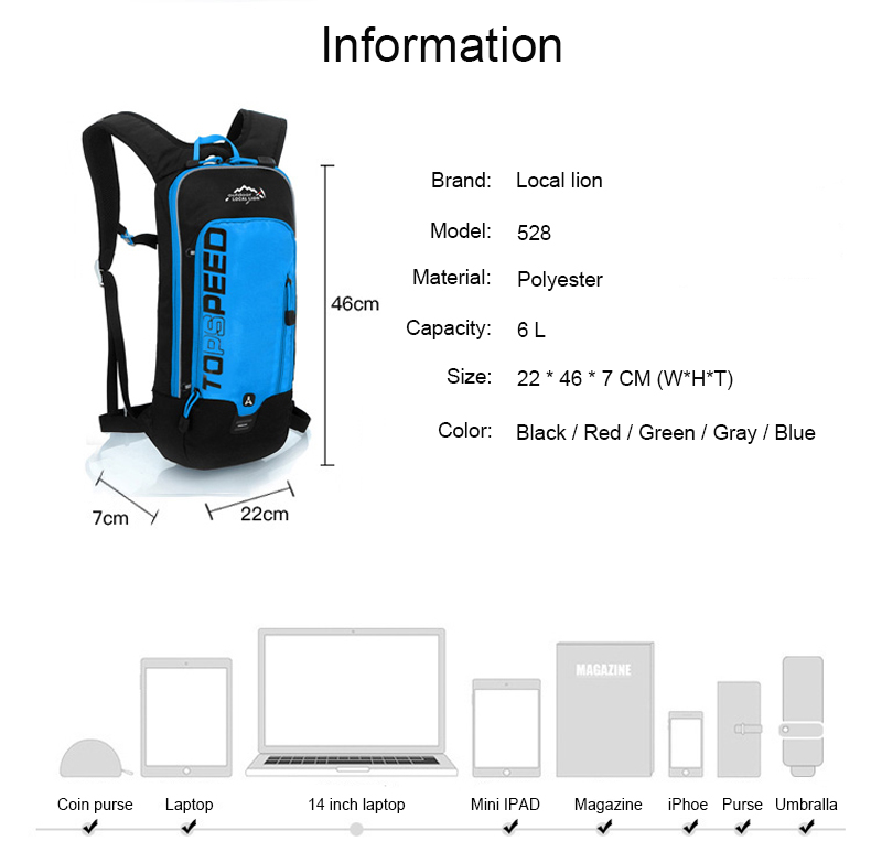 Used for: hiking, traveling, biking, etc