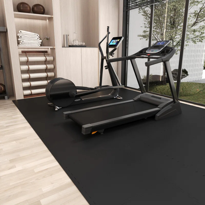 6mm 24-inch Wide X 24-inch Long Gym Floor Tiles, Interlocking Rubber Floor Tiles - 8 Pieces