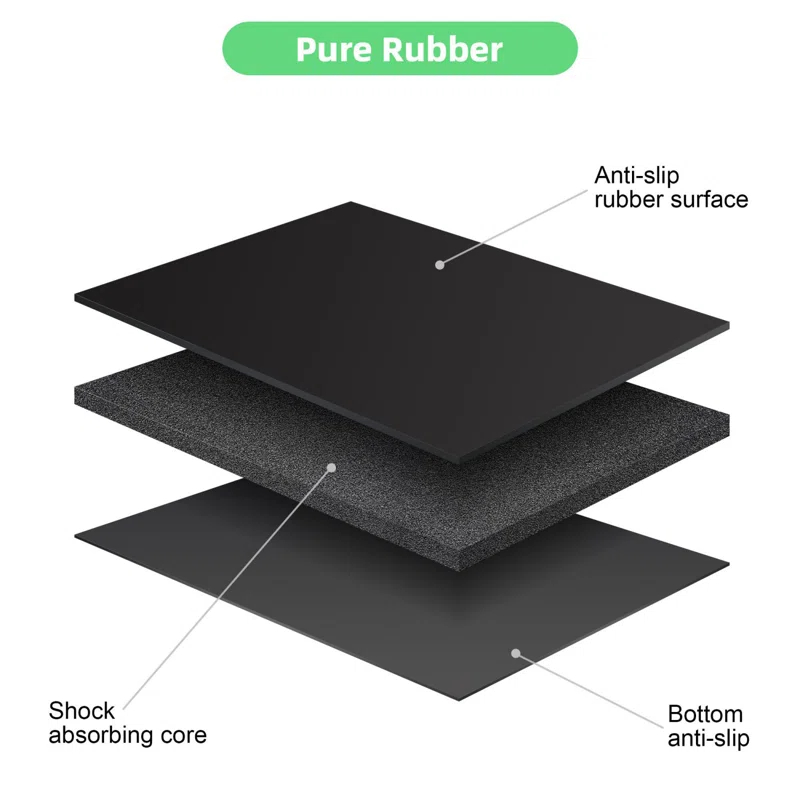 Natural Rubber: Jeedeson rubber flooring tiles offer natural sound absorption and shock-absorbing properties. Enjoy a quiet and comfortable workout experience no matter what type of exercise you do.