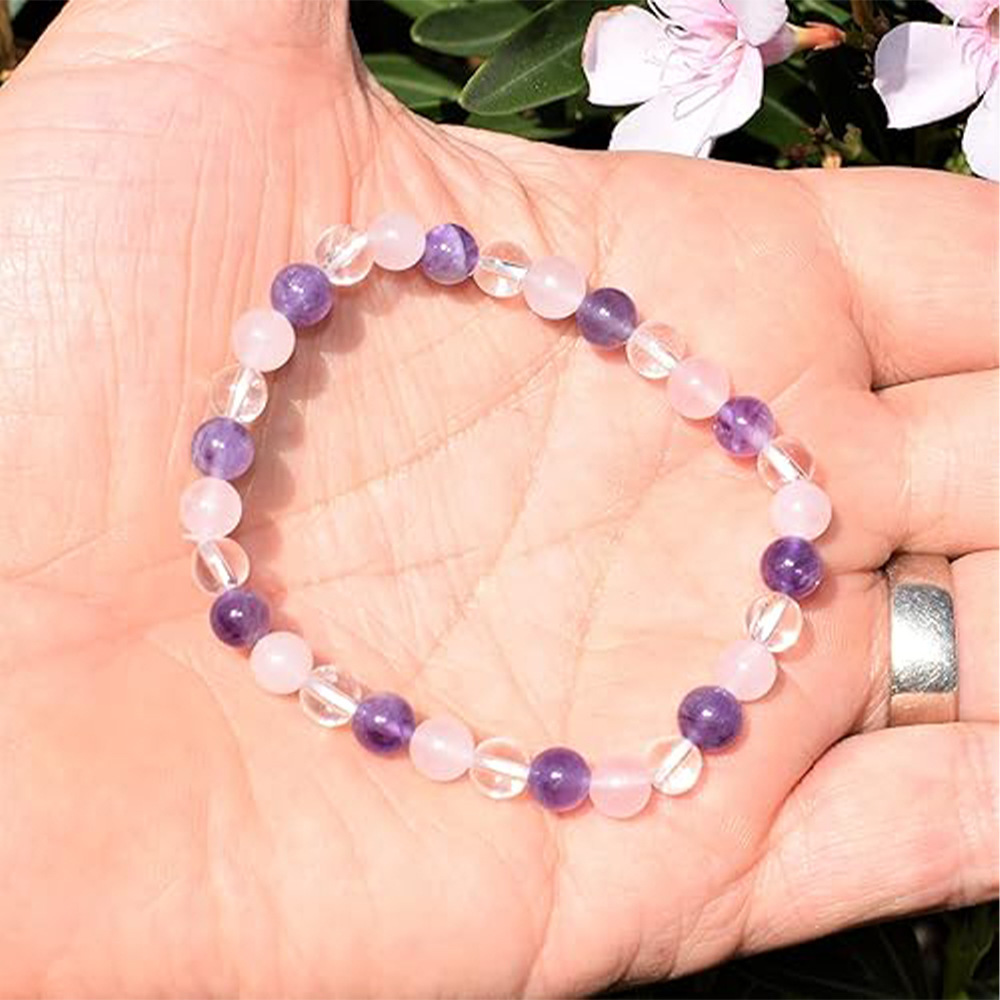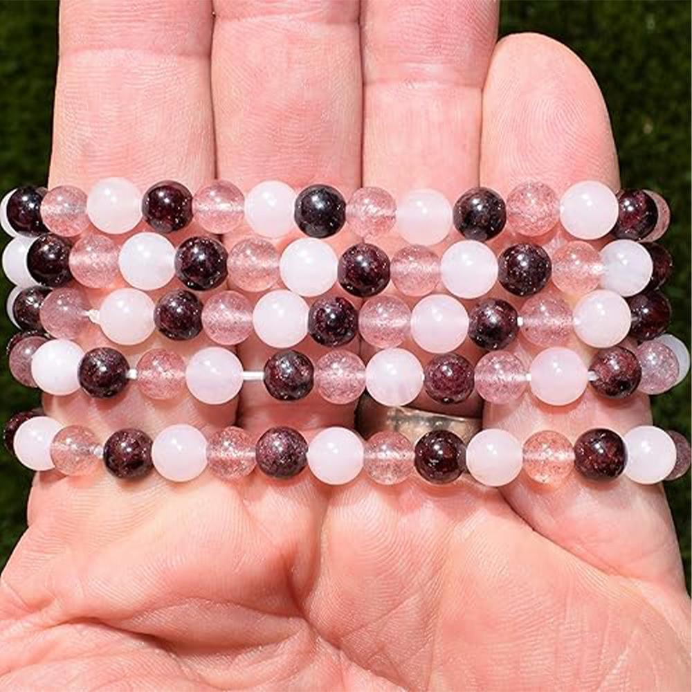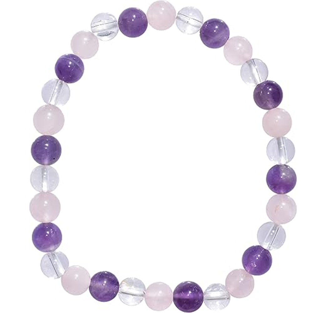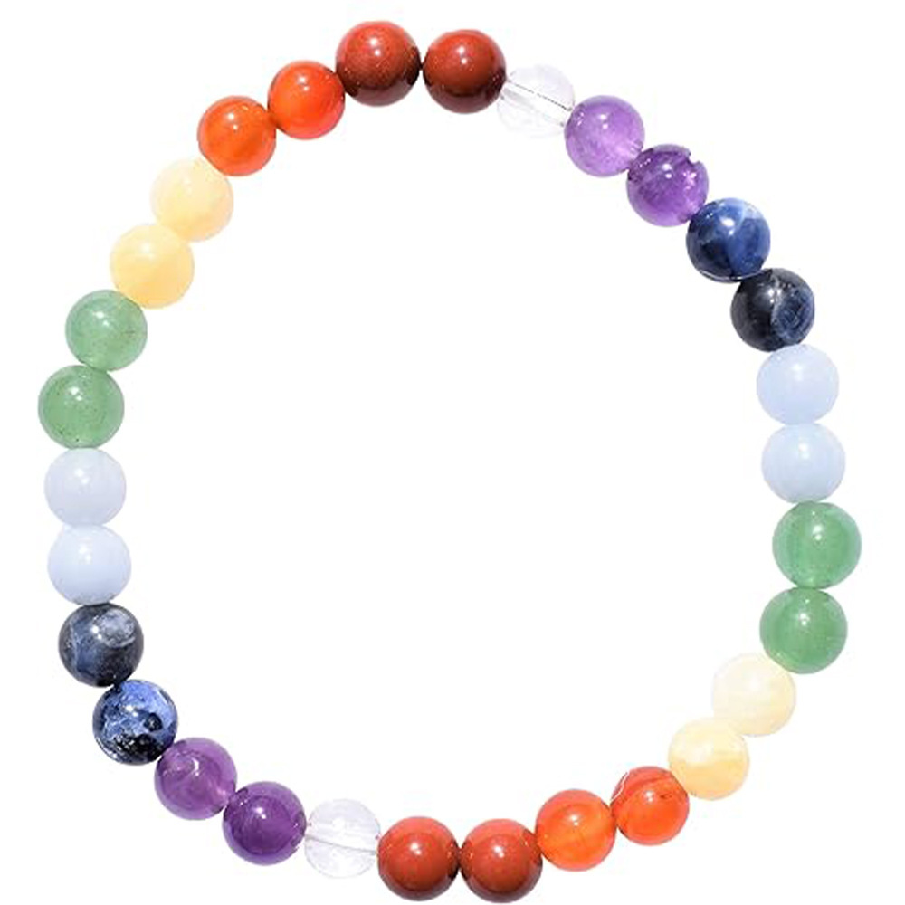 6mm Mixed-Color Stone Bead Elastic Bracelet For Women