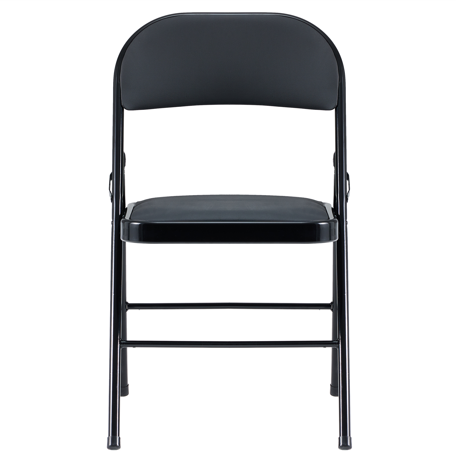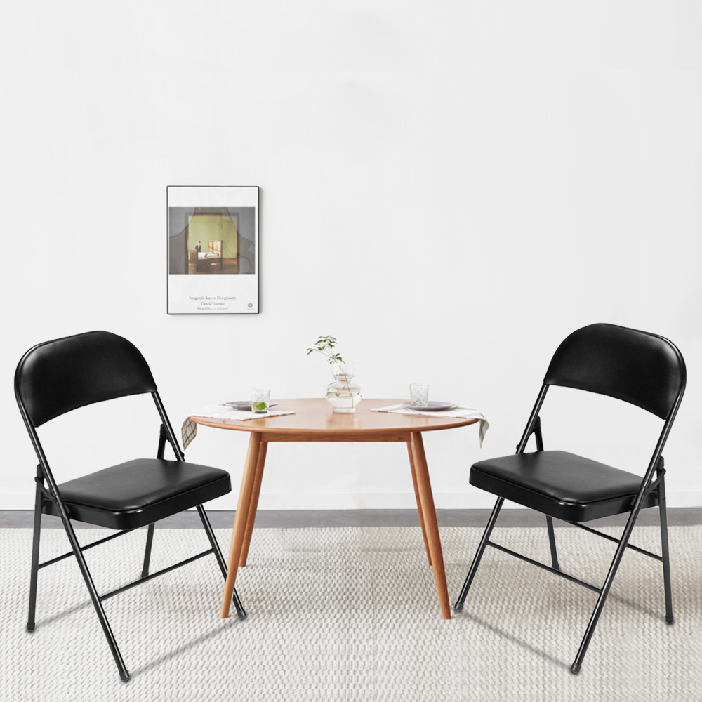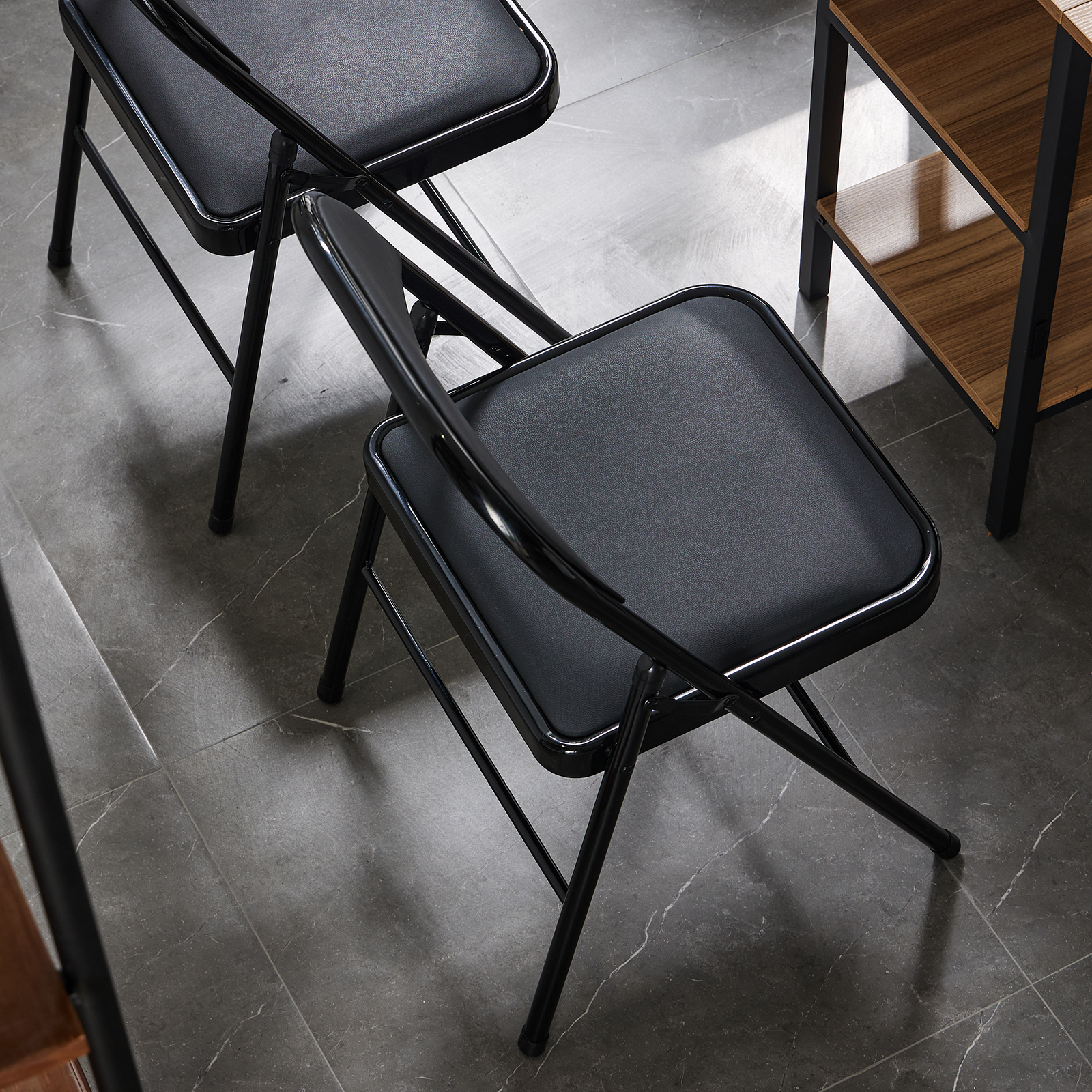 This simple style chair combined steel and PVC is suitable for dining room, living room, reception room, exhibition and other places. Sponge filled cushions and backrest give you a more comfortable experience. Sturdy steel frame, two cross - supporting structure can improve the stability of the chair, which makes the chair durable. Steel folding chairs are essential for entertaining guests at large games, parties or events. And they are the best choice when you need additional seats. After use, folding chairs are folded and compact for easy folding and storage. The chairs have smooth surfaces, which is easy to clean. The plastic tube sleeves on chair legs can effectively protect your floor and prevent scratching.