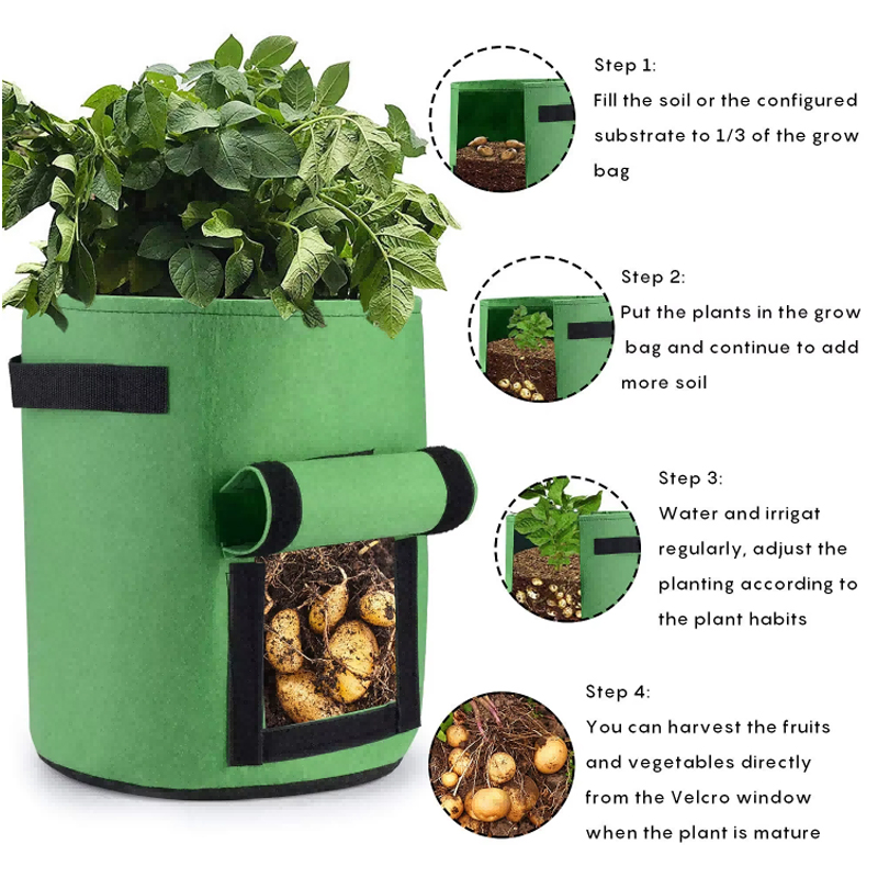 DESIGN: 5 Pack 7 gallon garden Potato grow bag comes with visualization velcro window ability to quickly and accurately determine whether potatoes are ripe and harvest them directly without having to dig in clay soil!