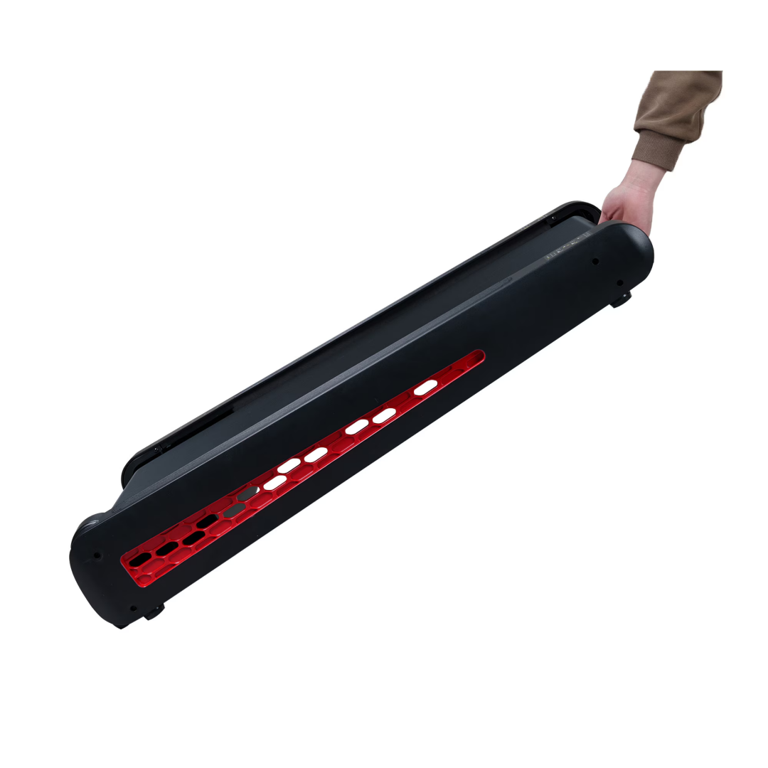 Freedom Stride Full-Deck Design: Experience the revolutionary Full-Deck Design with the motor seamlessly concealed beneath the running platform. Enjoy a spacious 15” x 39” workout area with no side rails or motor covers, ensuring unrestricted movement. Perfect for walking, jogging, or running with ultimate comfort.