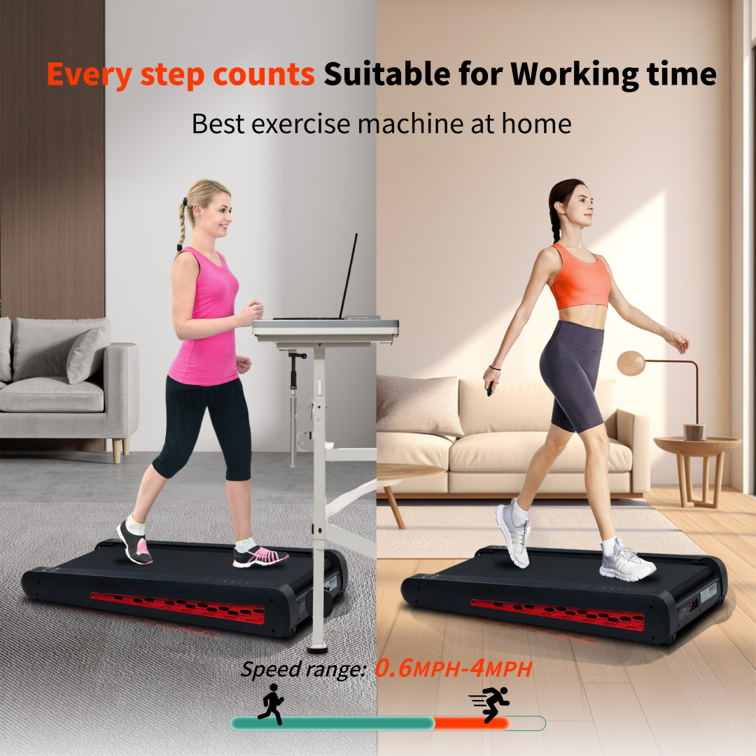 Easy Mobility & Storage: Built for convenience, this under-desk treadmill features a dual-wheel moving system for effortless transport and storage. Its upright storage design makes it a perfect fit for small spaces.
