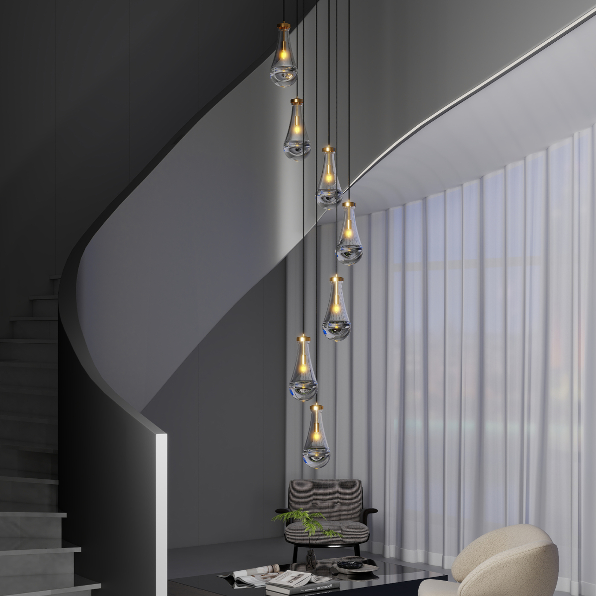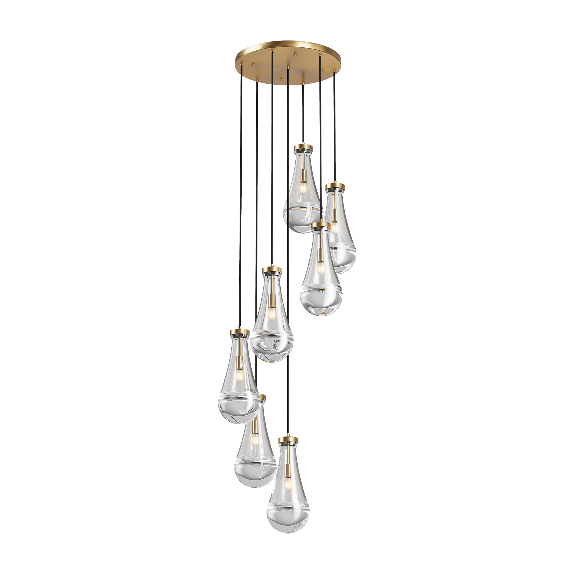 [Modern Raindrop Design] The cluster pendant light with blown clear glass shade, provide a timeless vintage touch and a clean modern aesthetic for your space(NOTE: Glass is hand-blown, If it is damaged during transportation, please contact us for a replacement)[Weight] The chandelier weighs 42 pounds and has a requirement for ceiling weight bearing. The base is reinforced by 3 layers, so you don't have to worry about it falling off![Adjustable Height]The kitchen island pendant light's all-brass base has a diameter of 17.7"; the raindrop glass measures 5"x11"; The total length of the hanging rope is 100", The rope pendant light's hanging rope has good toughness and is resistant to abrasion, fracture, and long service life, you can adjust the appropriate length according to the actual use of the environment. The bigger size of the pendant lighting for kitchen island allows you to get a better light effect.[Widely Applicable]The luxurious design of the pendant lights is not only suitable for home use, but also commercial use. For example, it can be used in a kitchen island, kitchen sink, Breakfast Area, dining room, bedroom, indoor, ceiling, living room, doorway entryway, corridor, foyer, bar, counters Desk, Reception Desk, restaurants, galleries, exhibition room, hotel, coffee shop, office.