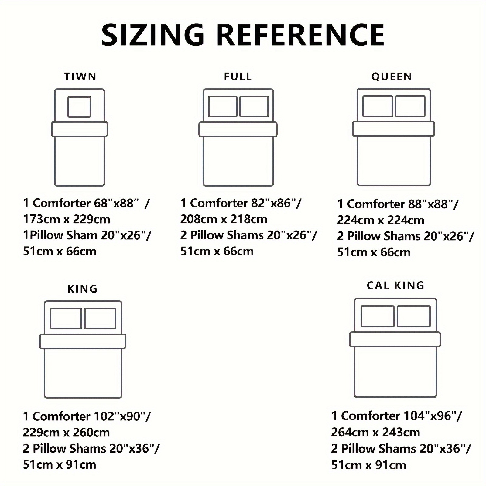 Size: full (81.89 "* 85.83"), Queen (88.19 "* 88.19"), King (90.16 "* 101.97")