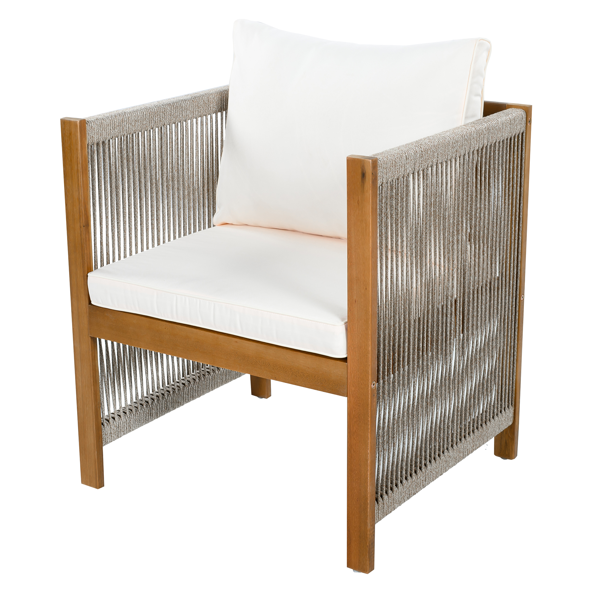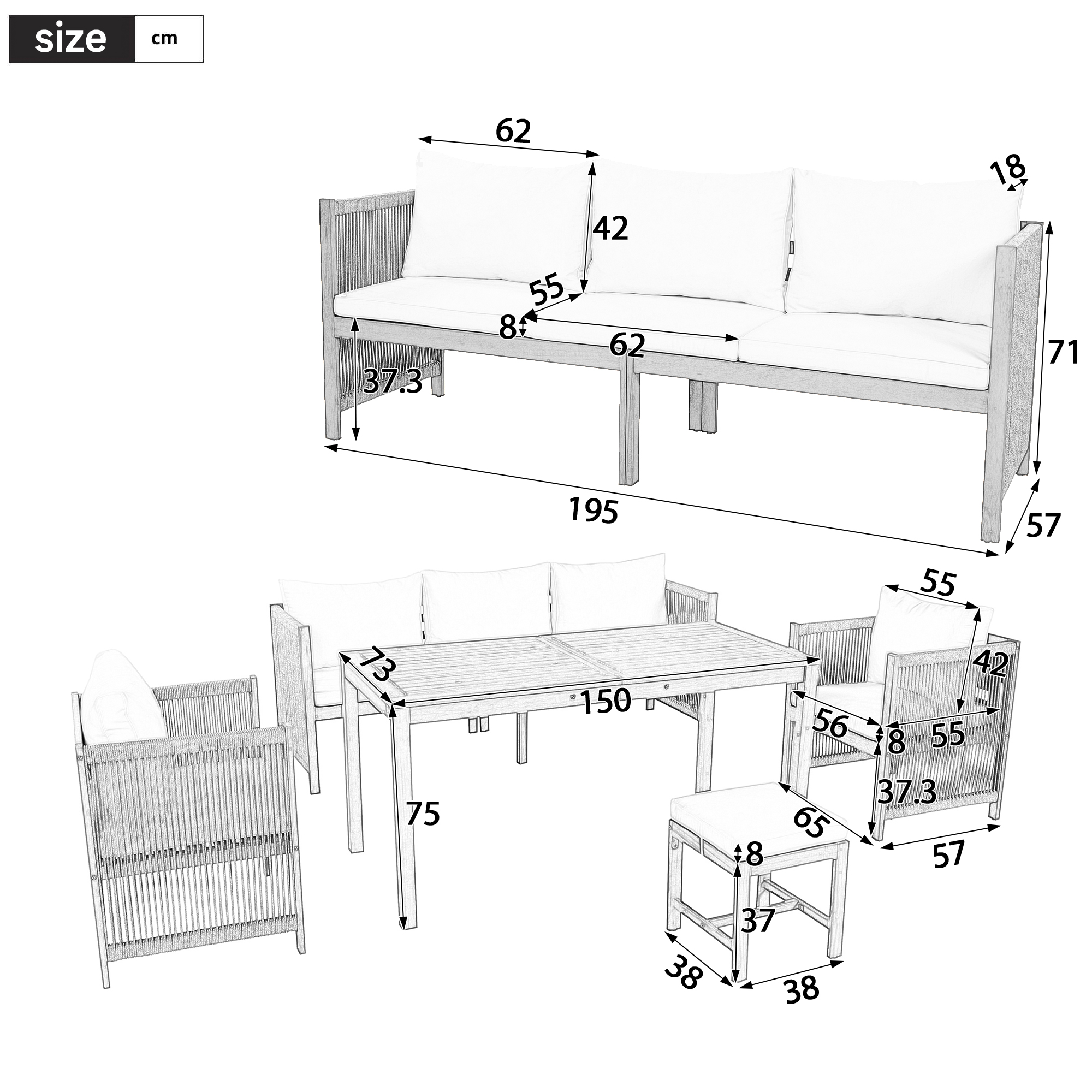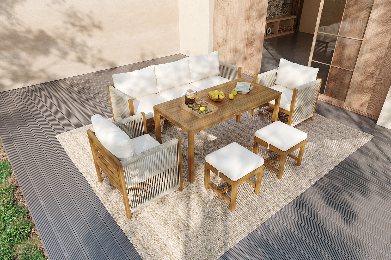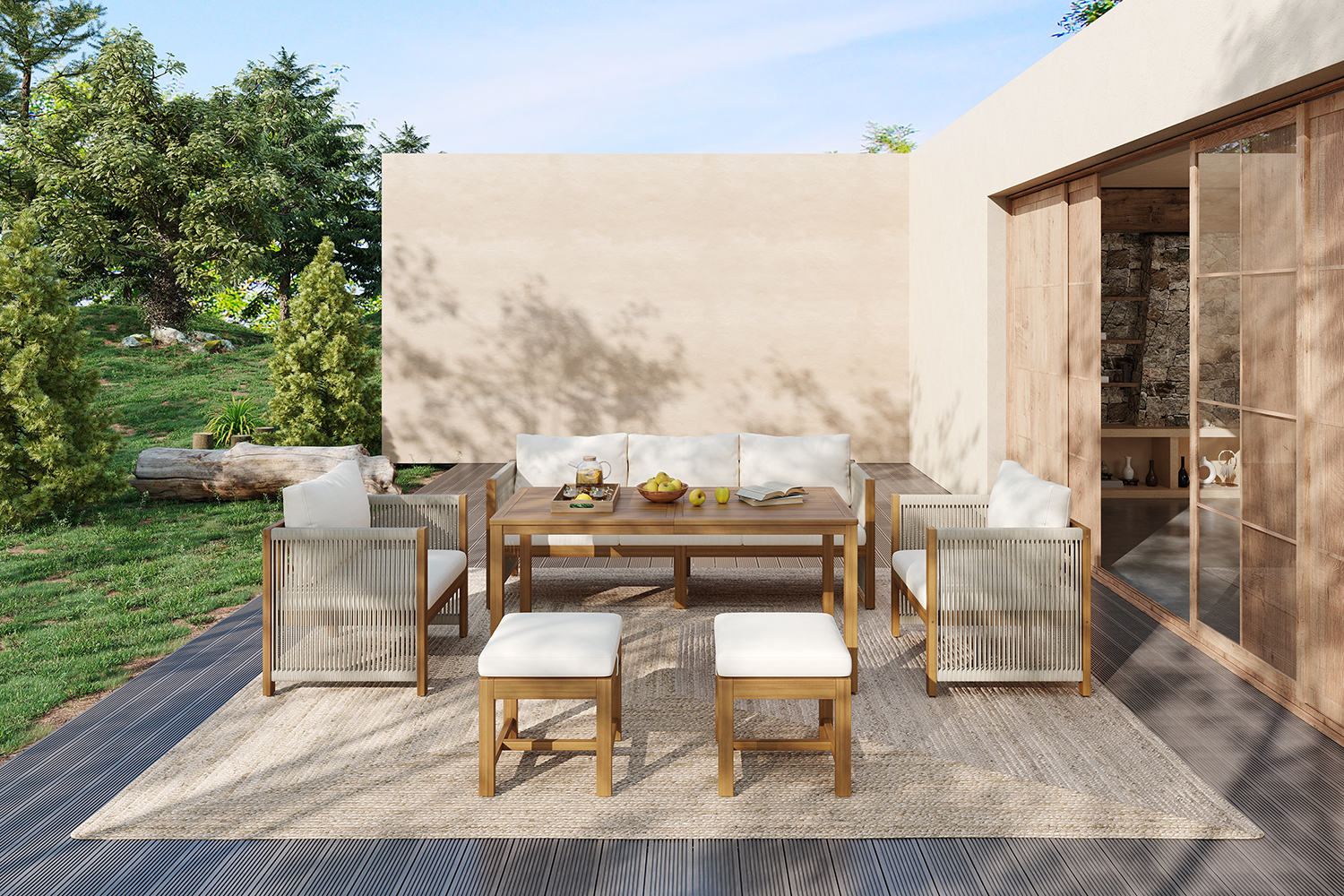 Product Name:7-Seater Garden Lounge & Dining Set, Acacia Wood Frame Outdoor Patio Furniture, Rope Weaving, Acacia Wood Tabletop, Includes All Chairs & Backrest Cushions, Beige