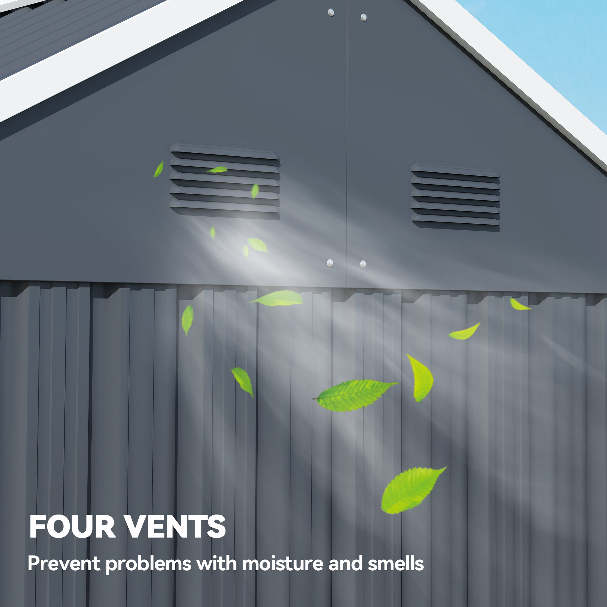 This metal shed is a great addition to every outdoor space. The 3.3 ㎡ space offers plenty of storage room. It features a door for easy access, air vents to keep inside aerated and a window to allow natural light to pour inside. Made from metal, the structure is strong and suitable for outdoors, with a door for easy access; complete with a latch lock for security. Foundation kit NOT included with this garden shed.