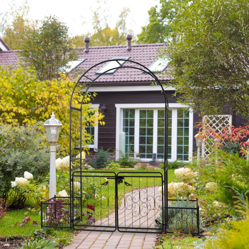 Looking for a trellis that support the vines in your garden? This 198.5*50*219cm Courtyard Arc Top With Door With Planting Frame Iron Art Iron Arch is here to help. Beautifully crafted, it will add style to any backyard or garden while providing plenty of support for your climbing flowers, vegetable plants, rose bushes, and vines. Sturdy iron frame with powder coated finish is rustproof to offer years of beauty. After being staked into the ground, this trellis is free-standing for fast and easy installation.