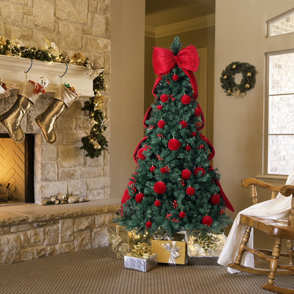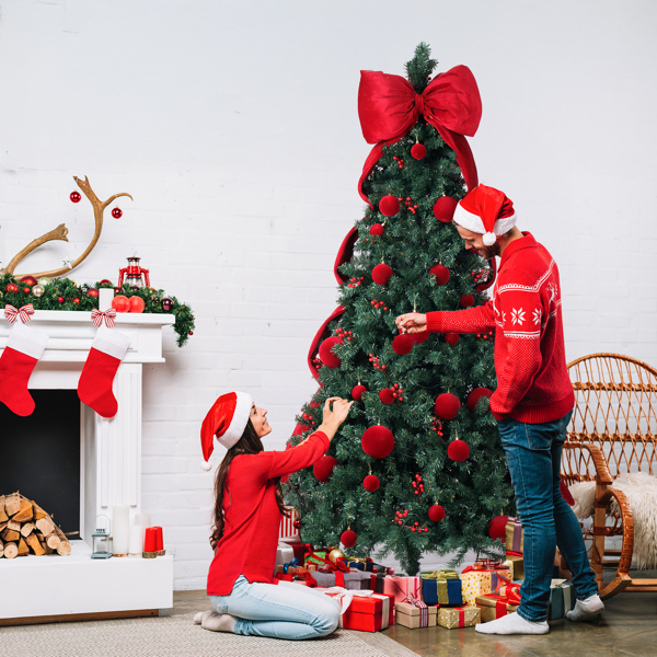 1. Unique Design: Featuring a giant bowknot and a set of classic red ball ornaments for you to decorate as you wish, the tree give you the freedom to personalize the tree to match your holiday vision. The deep red ornaments contrast beautifully with the lush dark green branches, helping you create a stunning centerpiece that captures the warmth and joy of the season—all while enjoying the fun of decorating it your way.