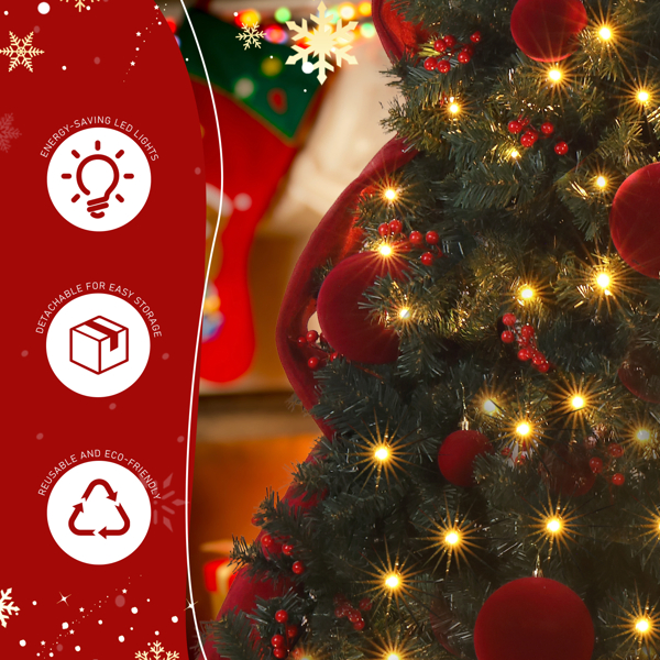 Create a magical holiday atmosphere in your home with this stunning Christmas tree. Designed to capture the beauty of the season, this tree brings warmth and joy to any space. With its realistic branches and sparkling lights, it offers a perfect canvas for your festive decorations. Whether you prefer a minimalist look or a lavish display, this tree sets the stage for your holiday celebrations, making it a timeless addition to your home for many seasons to come. Easy to set up and built to last, it's the ideal centerpiece for your holiday décor.
