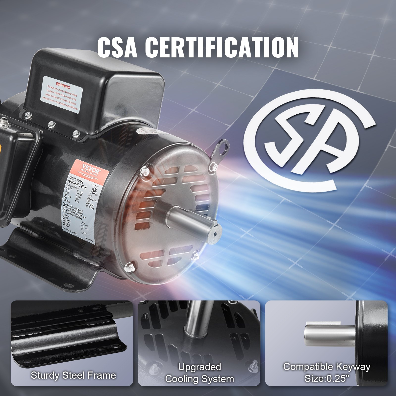 High Performance: 7.5HP, 3450 RPM, Single Phase, Full Load Amps: 31.6Amp, 230V 60Hz, SF: 1.0.