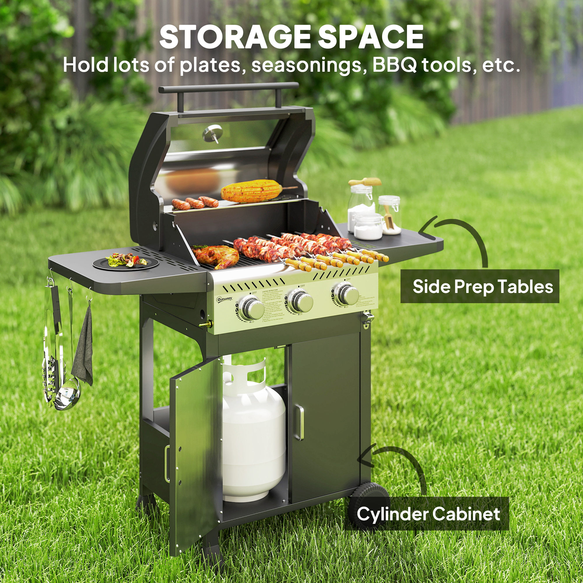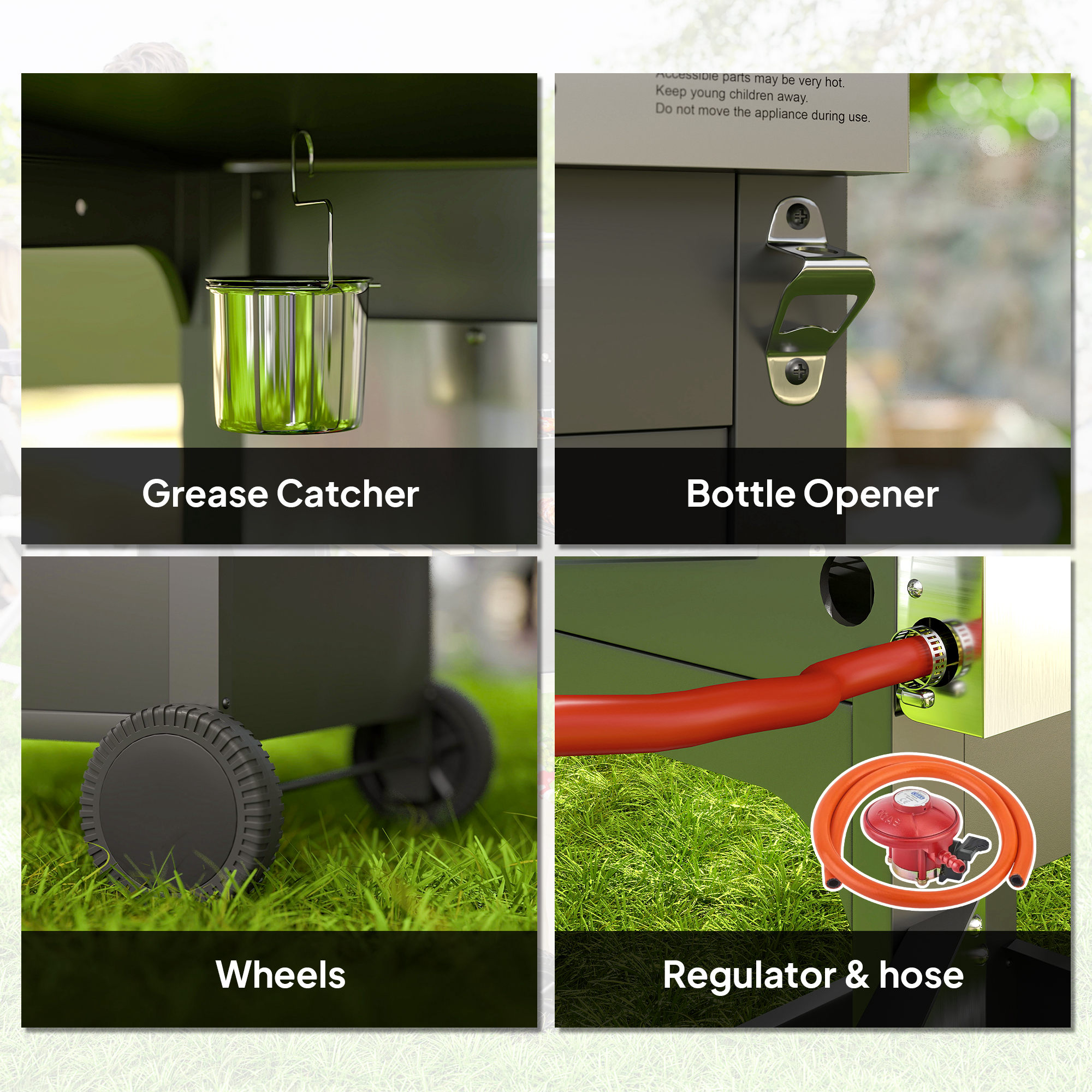 Fire up your outdoor feasts with this three-burner gas bbq. The 2378 cm² grilling area is spacious enough for cooking for roughly 5-10 people, with a warming rack to keep food warm when cooked. With a see-through panel on the lid to see inside easily, completed with a thermometer to keep the inner temperature in check.