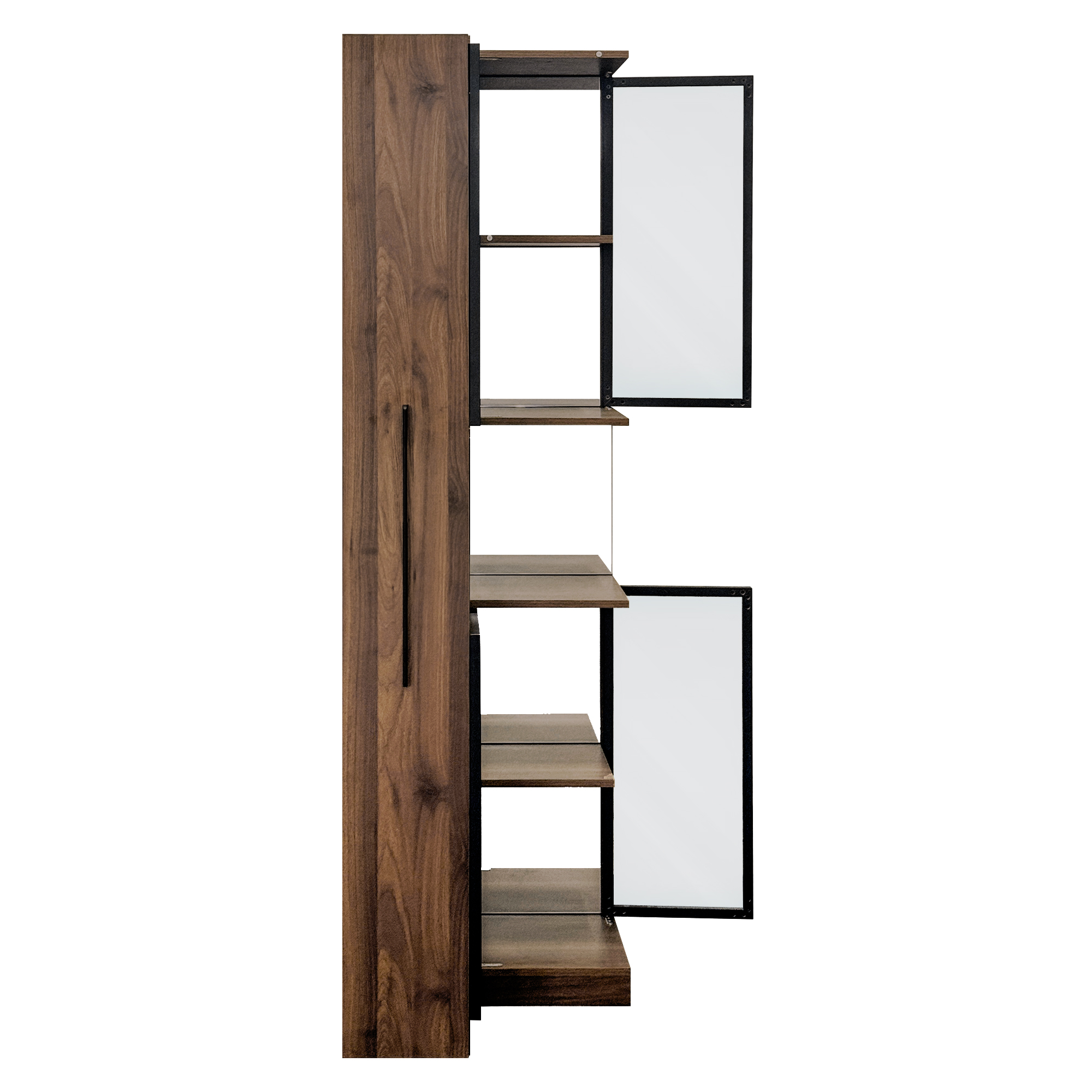 • The cabinet with glass doors allows you to showcase collectibles while storing everyday items, enhancing the overall spatial quality.The cabinet with glass doors features 5 tiers of storage space to neatly organize books, utensils, or display items.