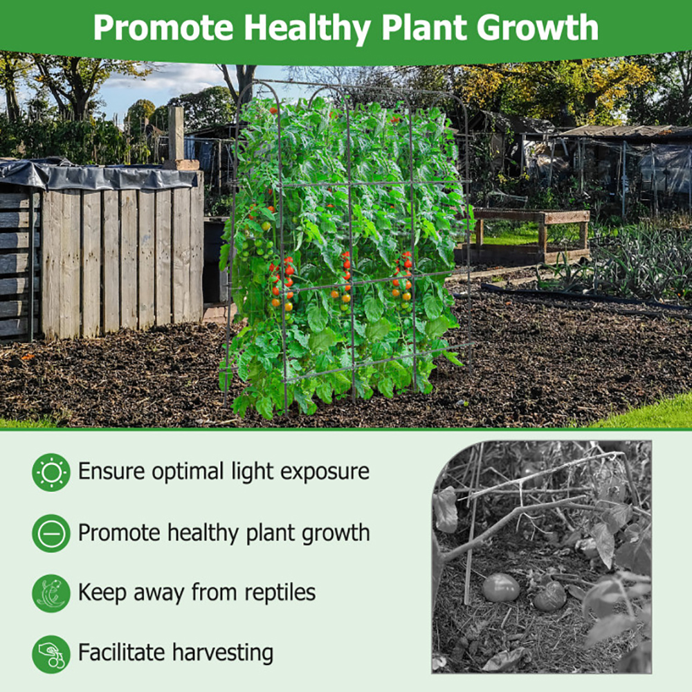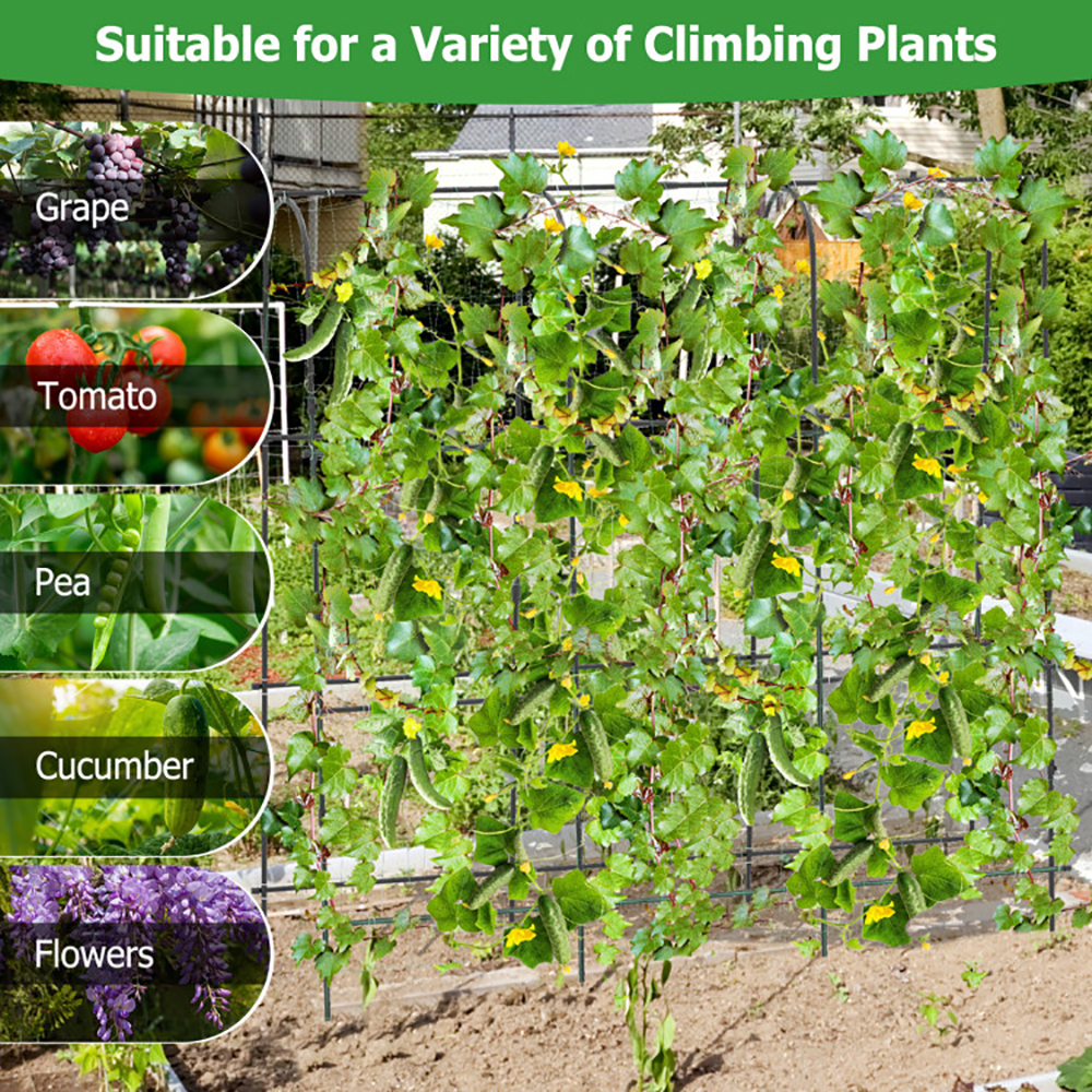 ● Wide Application: This garden trellis is suitable for a variety of climbing plants, such as grapes, tomatoes, peas, cucumbers, flowers, and more. It could keep plants away from ground during the growth process, so as to reduce plant disease and keep away from reptiles, promoting healthy plant growth.