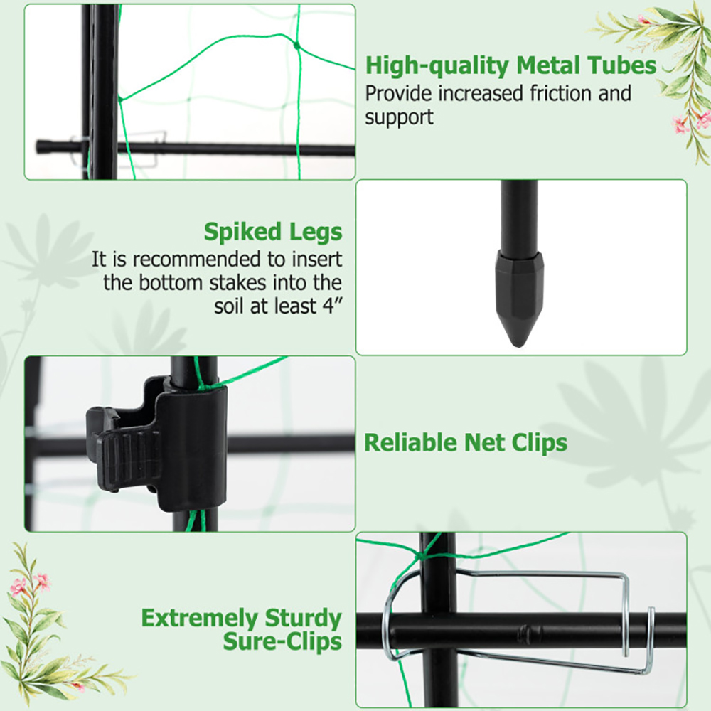 ● Stable Structure: The U-shaped frame is secured with extremely sturdy sure-clips, complemented with spiked legs that can be deeply Bring in the ground, ensuring good stability. Additionally, it adopts textured metal tubes, providing increased friction and support for plants to grow up.