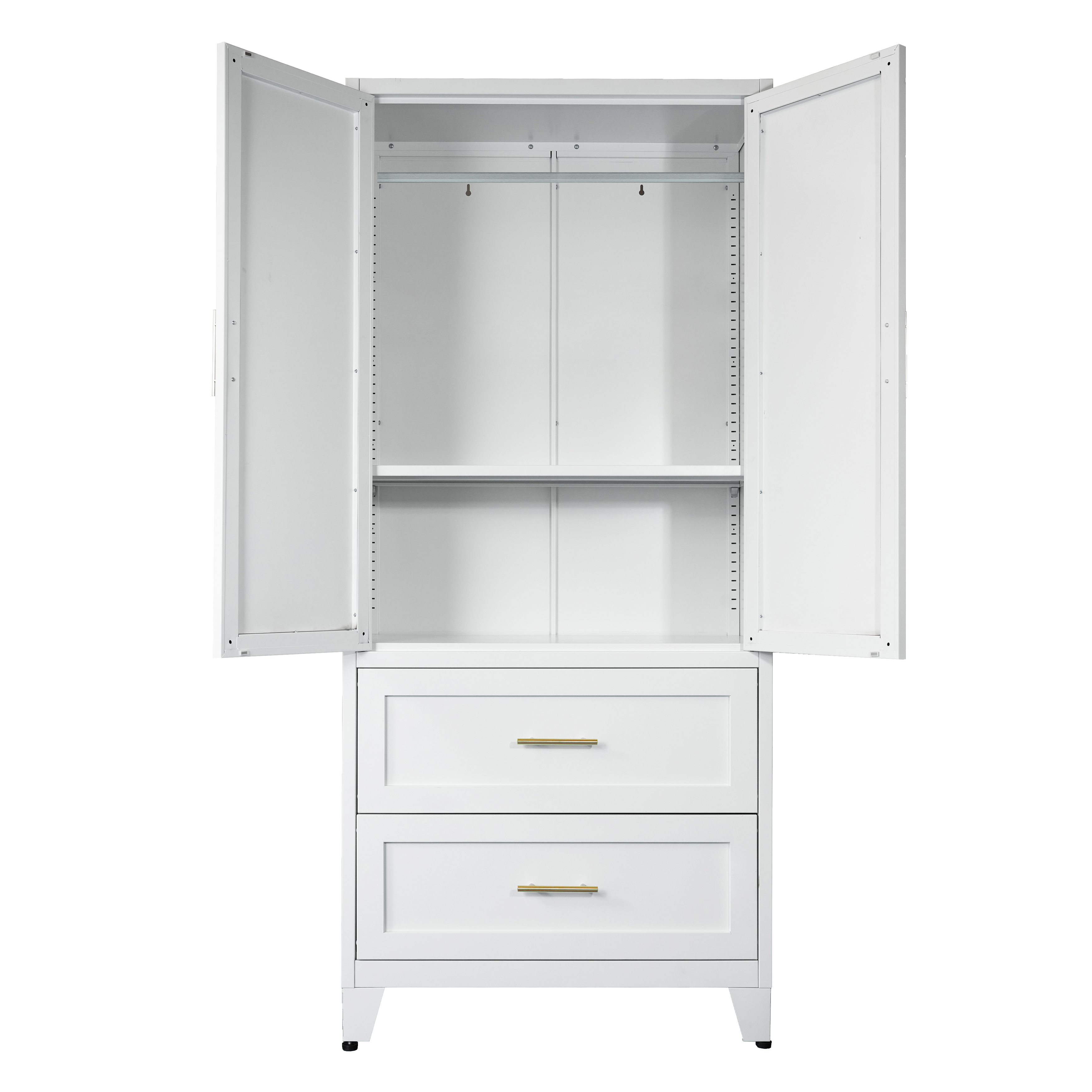 Product Name:71" Tall Metal Wardrobe Cabinet with 2 Drawers and Hanging Rod, 2 Doors Wardrobe Closet with Shelf for Bedroom, Office, Laundry Room,Entryway ,Foyer,Guesthouse (White)