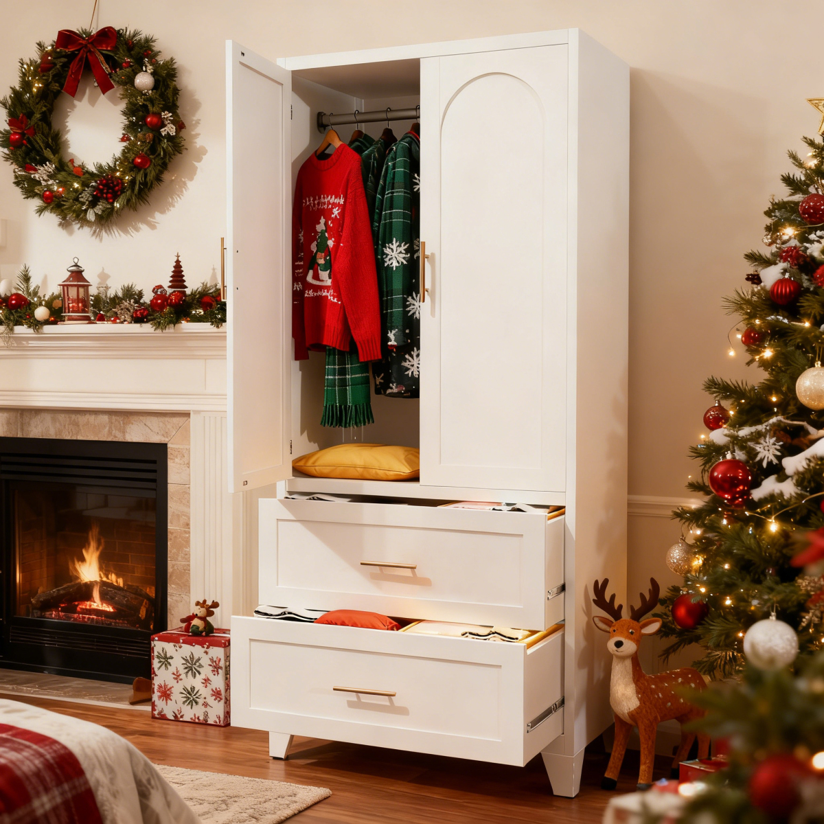Product Name:71" Tall Metal Wardrobe Cabinet with 2 Drawers and Hanging Rod, 2 Doors Wardrobe Closet with Shelf for Bedroom, Office, Laundry Room,Entryway ,Foyer,Guesthouse (White)