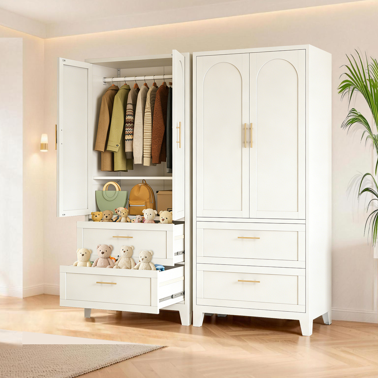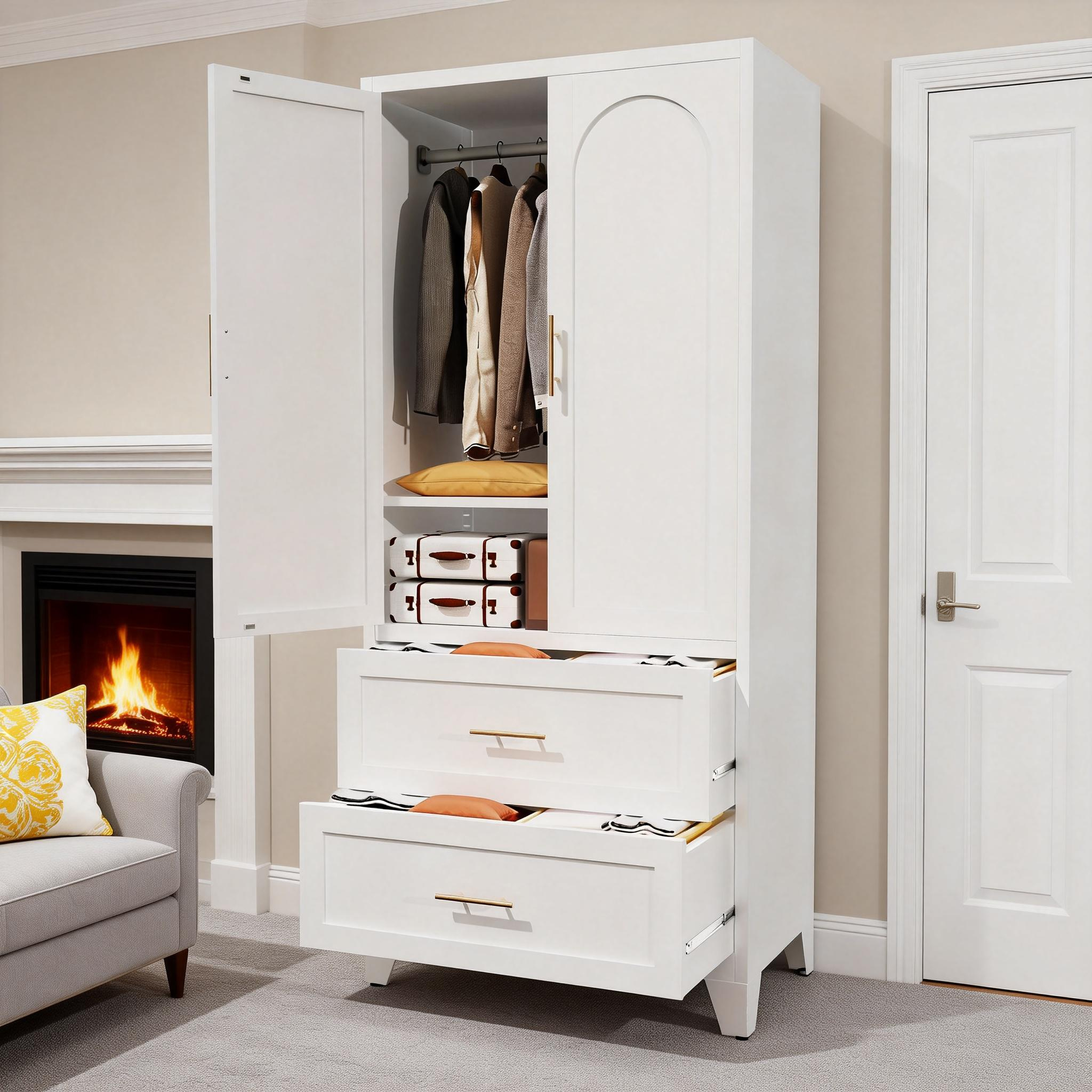 Product Name:71" Tall Metal Wardrobe Cabinet with 2 Drawers and Hanging Rod, 2 Doors Wardrobe Closet with Shelf for Bedroom, Office, Laundry Room,Entryway ,Foyer,Guesthouse (White)