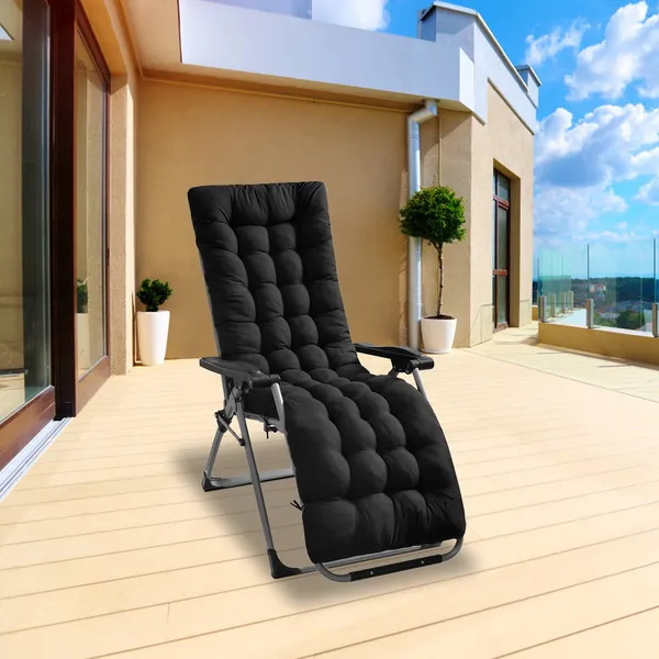*Upgraded Material*:Made of super soft and skin-friendly polyester fiber,wear-resistant and not easy to fade. The synthetic fiber filling is of good resilience and will not sag easily,comfortable and breathable. Machine wash is available. *Humanized Design*:3 Pairs of straps stitched tightly along two seams and the head cover on the top can fasten the cushion securely to the chair. No need to worry about the cushion sliding from chair. Have a restful sleep in this cushion to relax your body and your mind. *Perfect-Match Size*:With a size of 71x22x4in,the cushion is suitable for most sun loungers. For vacuum compression package,please put the lounger cushion in the sun to be fluffy again. *Wide Applications*:Suitable for indoor and outdoor use,ideal for sofas,tatami,benches,reclining chairs,rocking chairs,lawn chairs,bay window,and car seats. *Ideal Gift*:An ideal gift for office workers,elders,driver,and etc. The soft feeling can relieve back pain and help them fall into sleep quickly.