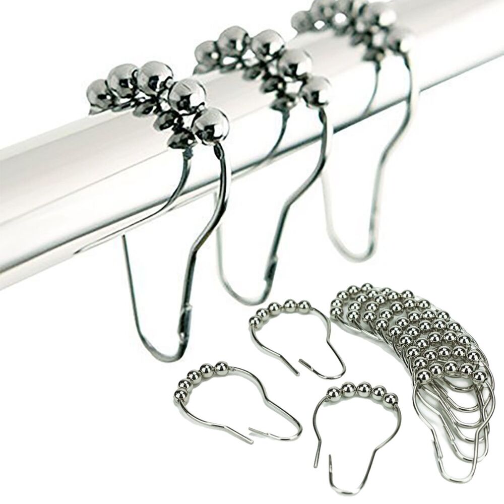 Accessory construction: 11 holes, stainless steel holes + polyester shower curtain + weighted lead wire. Iron version: with 12 iron hooks, plastic version: with 12 plastic hooks.