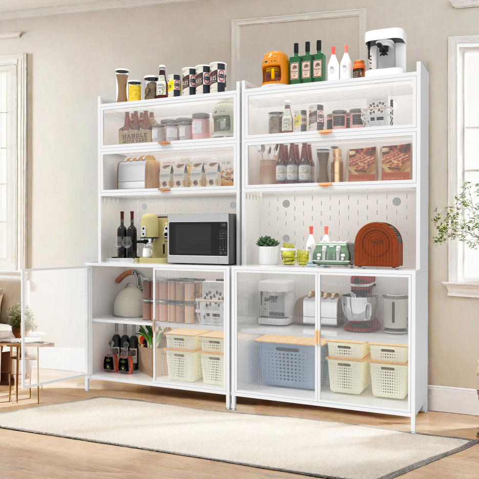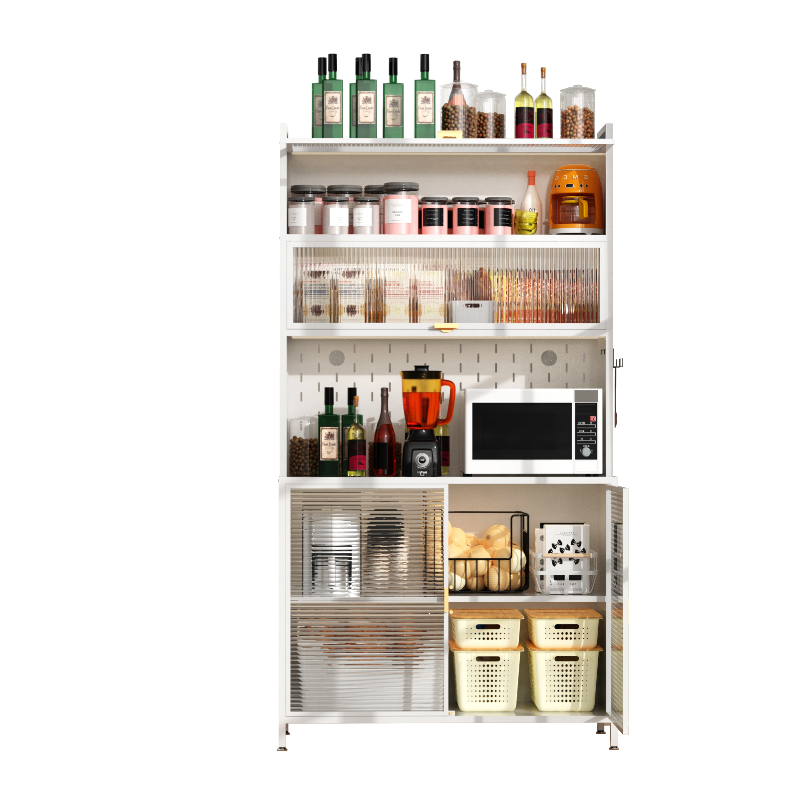 Product Name:73'' Tall Kitchen Pantry Cabinet , 6 Level Flip Door with Pegboard Metal Pantry Storage Cabinet, Anti-Tip Design Hutch for Kitchen, Dining Room, Living Room (White)