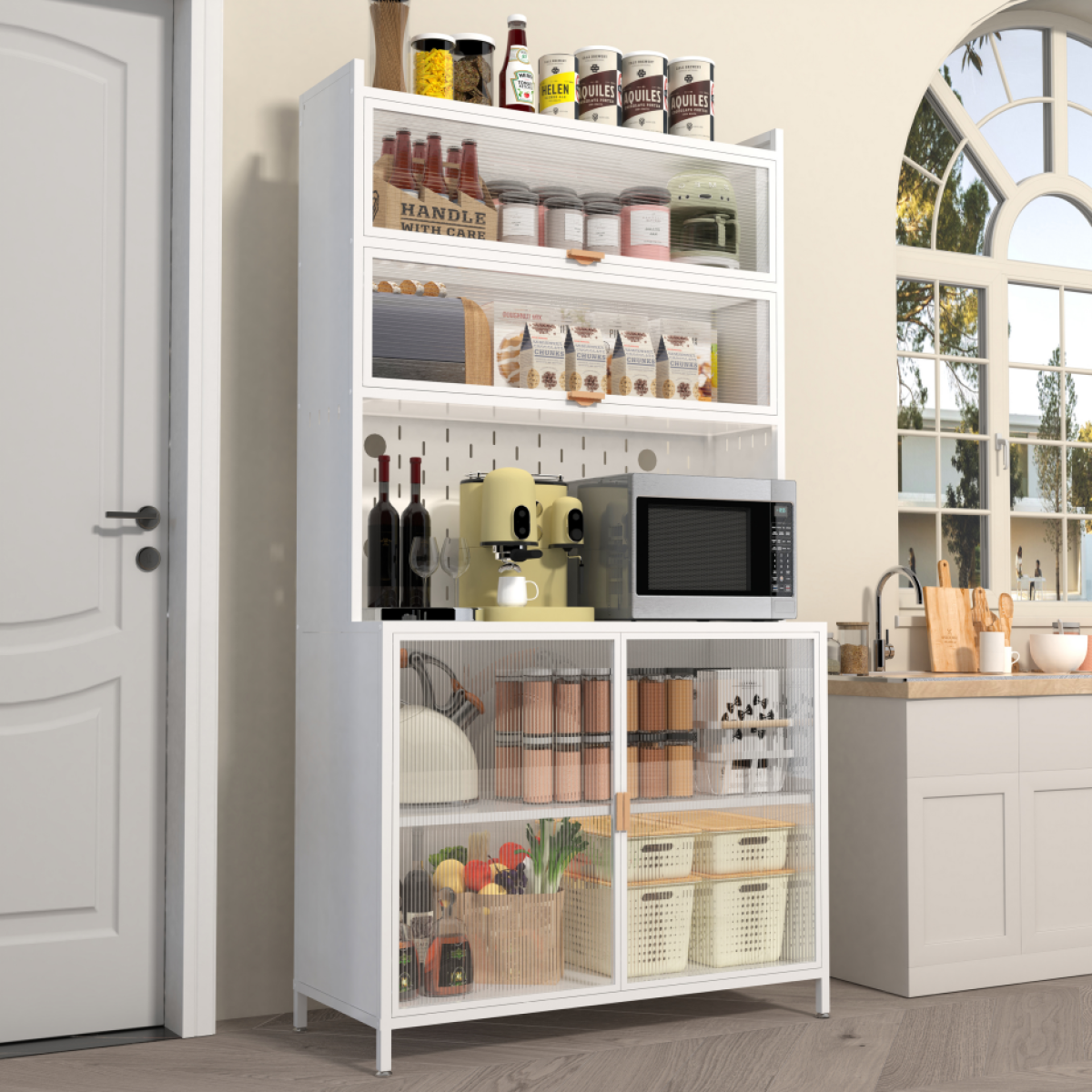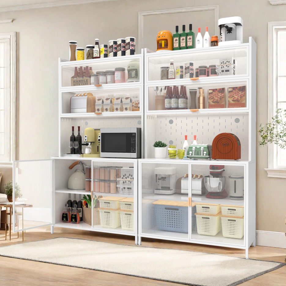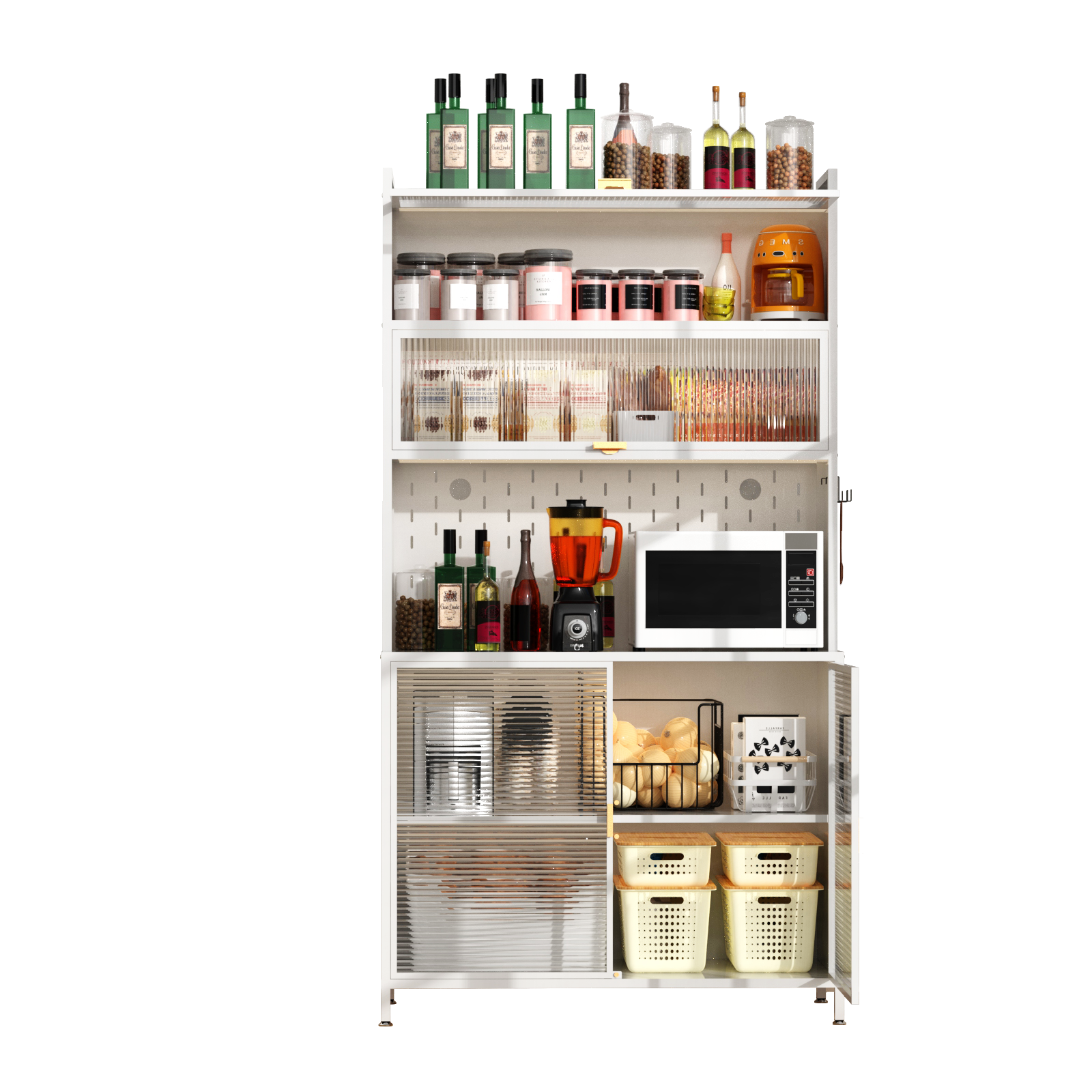 Product Name:73'' Tall Kitchen Pantry Cabinet , 6 Level Flip Door with Pegboard Metal Pantry Storage Cabinet, Anti-Tip Design Hutch for Kitchen, Dining Room, Living Room (White)