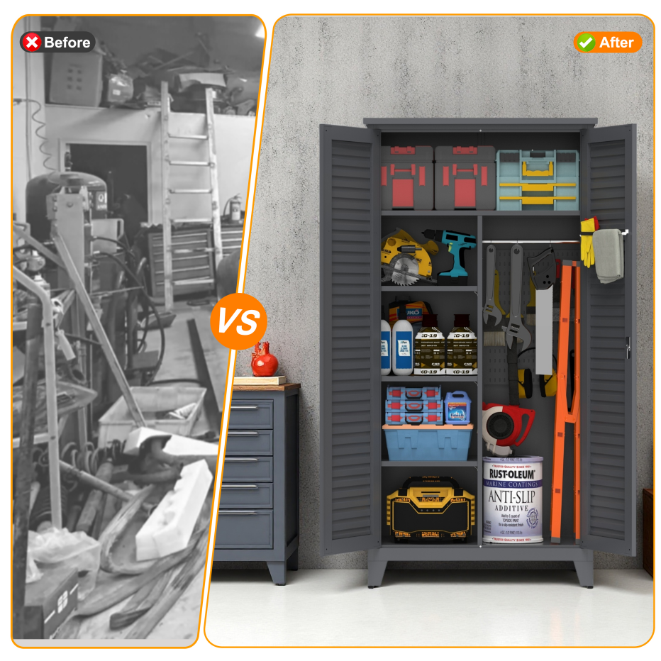 Product Name:73'' Tall Metal Tool Storage Cabinet, with Ample Storage Space for Garage,Warehouse,Garden,Office, Living Room,Bathroom,Utility Room ( Slate )