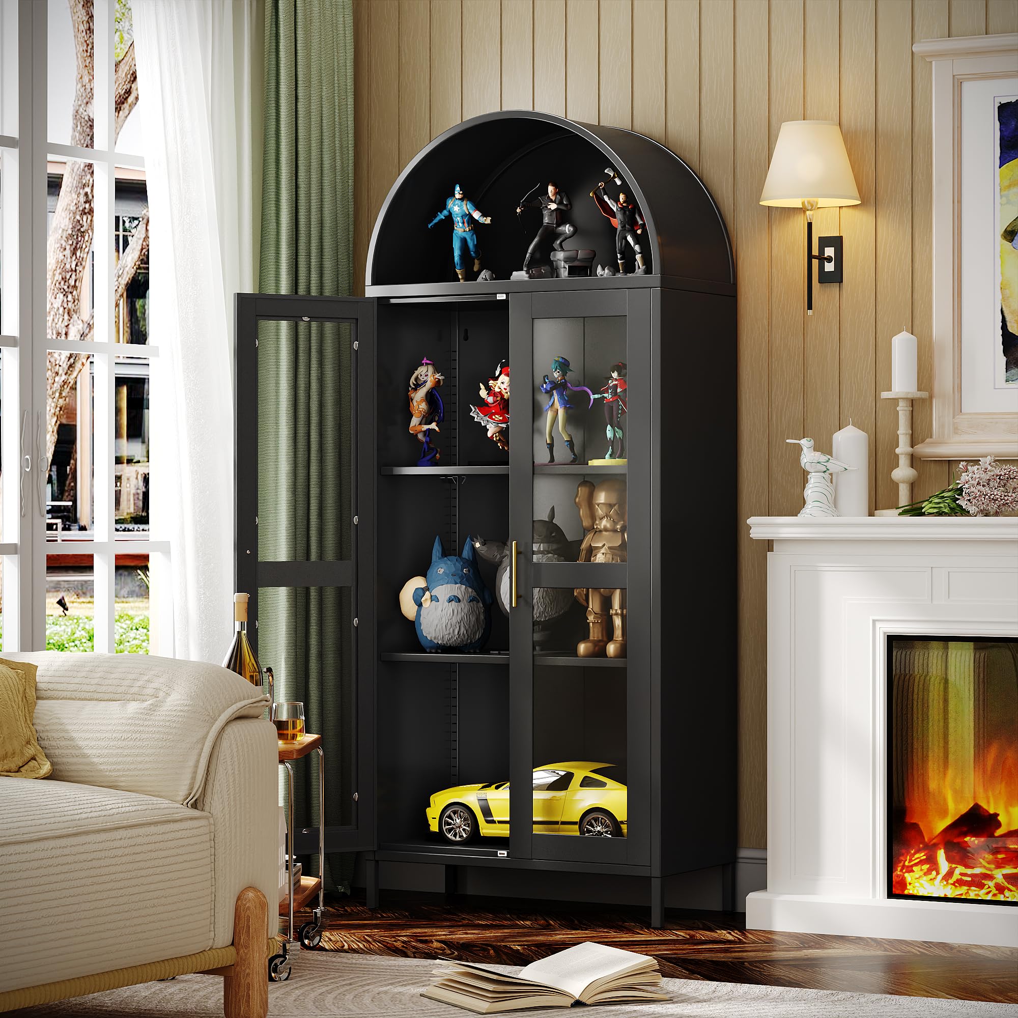 73inch Tall Arched Display Cabinet With Glass Doors, Metal Arched Curio Cabinet With 2 Adjustable Shelves For Living Room, Home Office, Assembly Required, Black