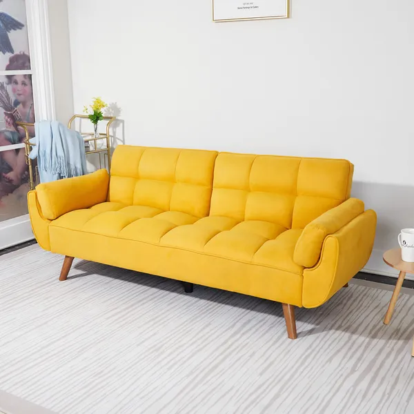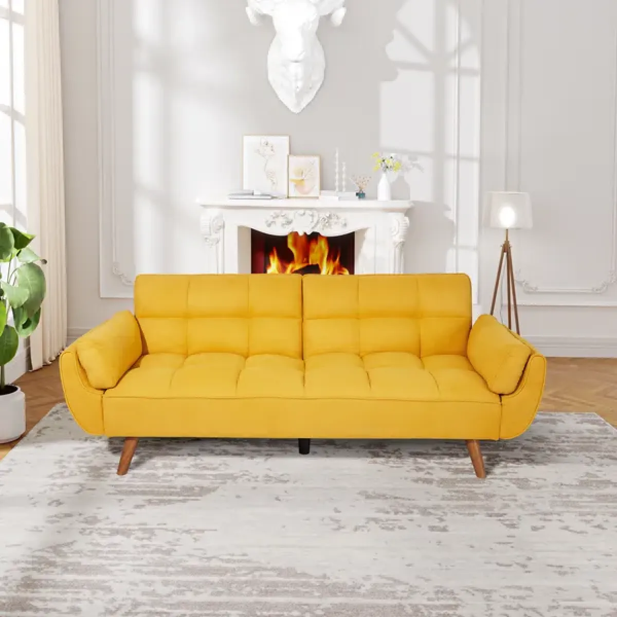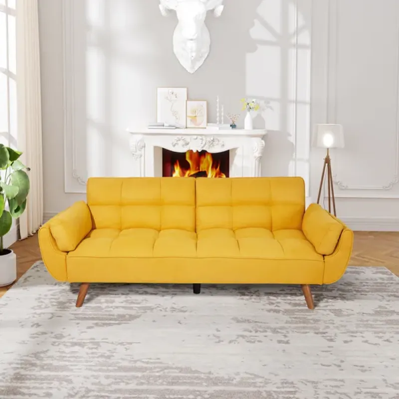 75' Flared Arm Convertible Sleeper Sofa-Yellow
