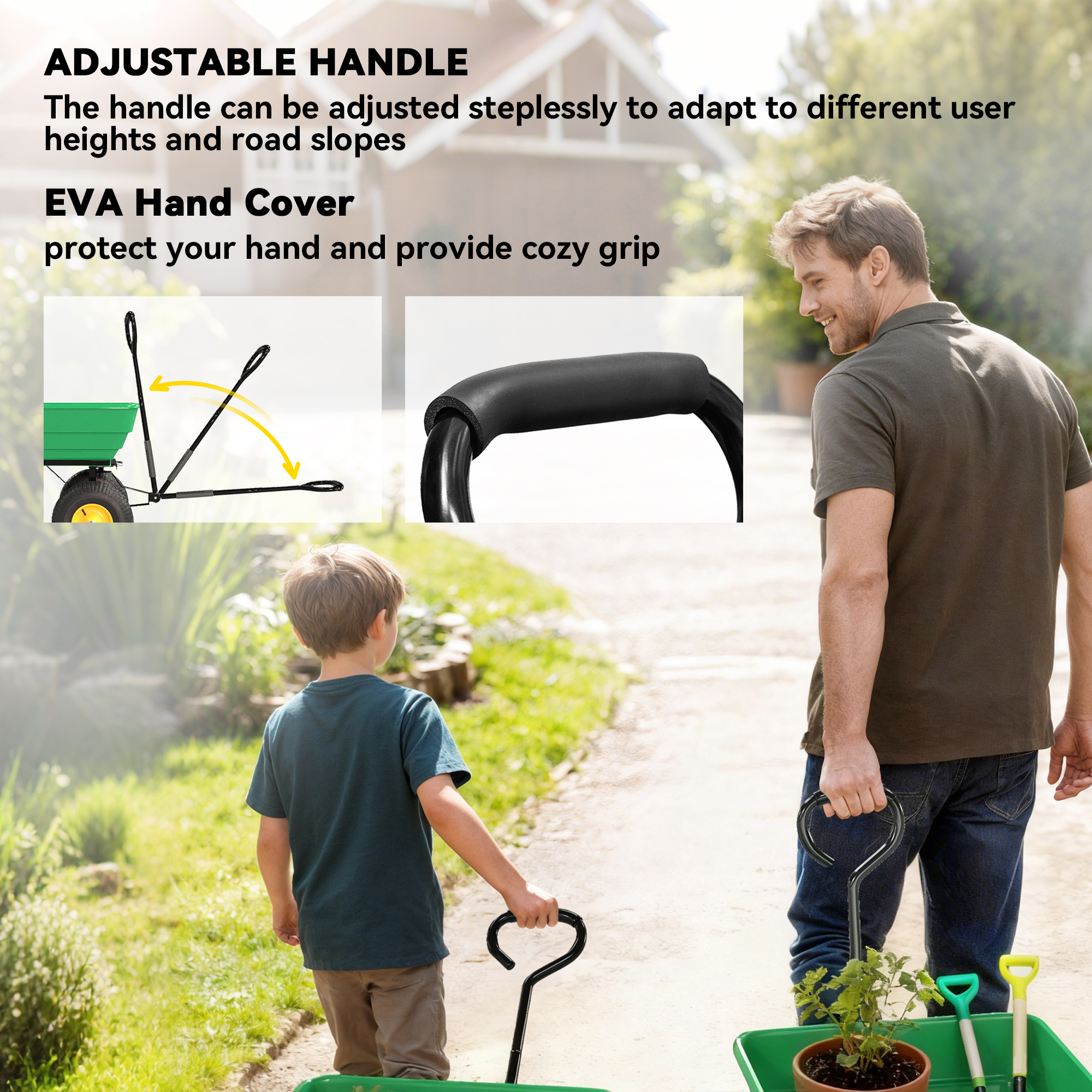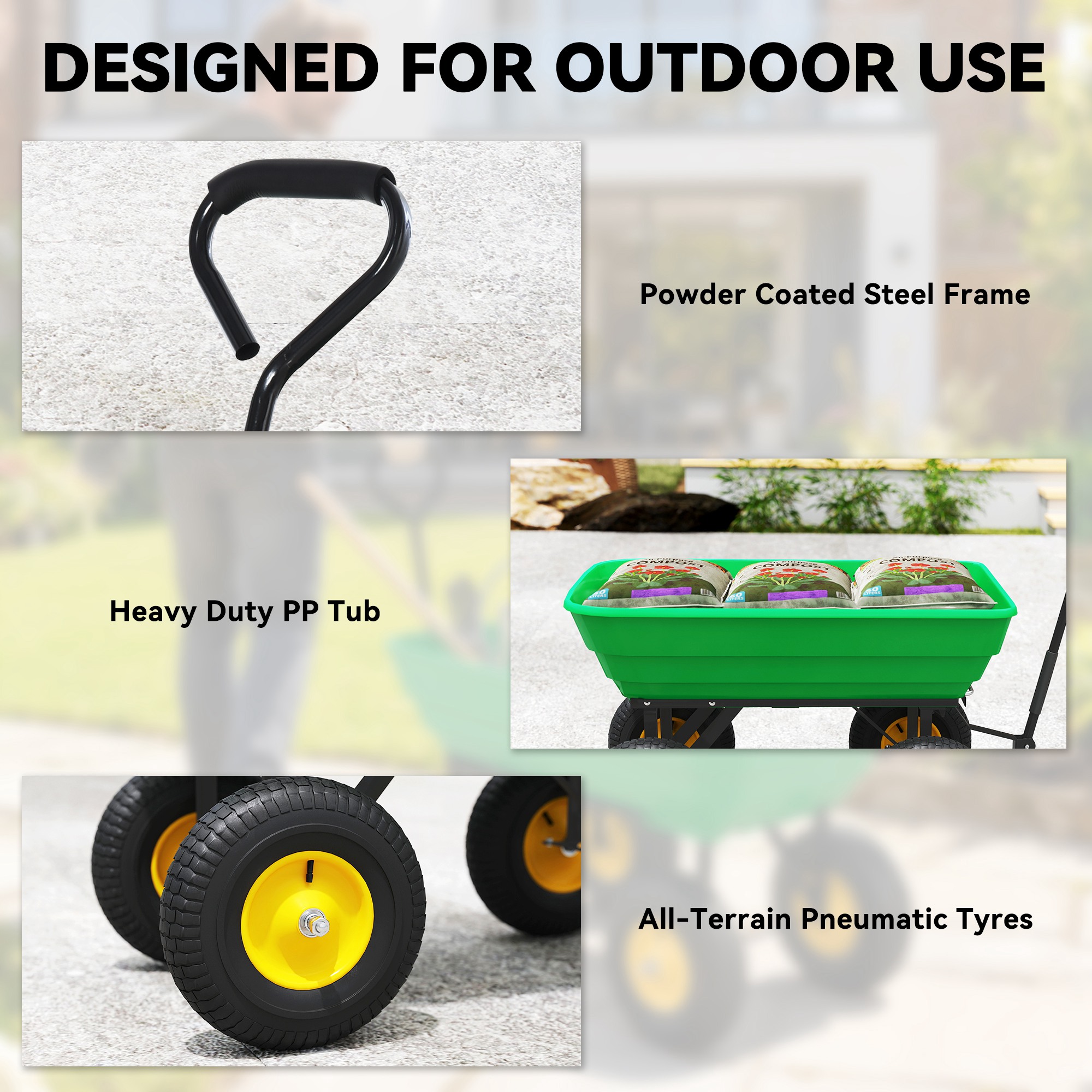75 Litre Large Garden Cart, Tipping Wheelbarrows Heavy Duty Garden Dump Trolley 200kg Capacity For Festivals, Tools, Plants, Logs - Green