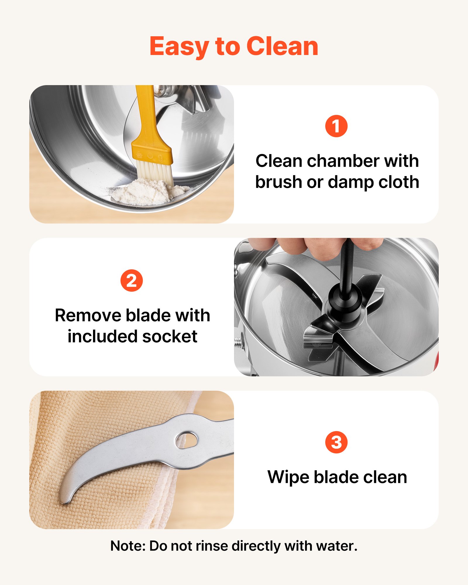 Finer & More Uniform Grinding: Upgraded 3-layer stainless steel sharp blades work together to deliver finer and more even grinding. Combined with the 270° swing design to produce finer powder, reduce sticking to the chamber, and make pouring out easier