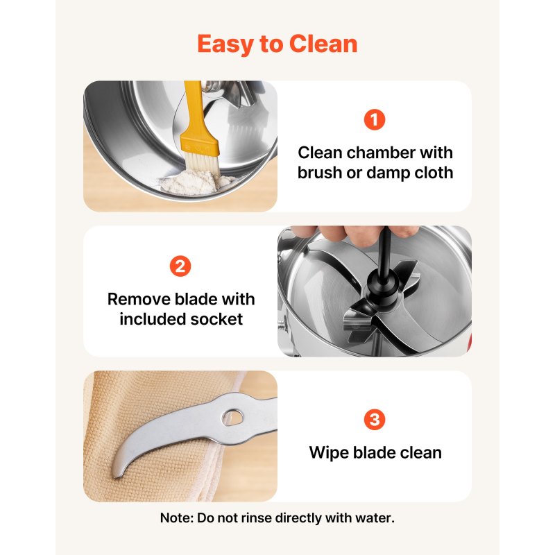 Versatile Dry Grinding: This electric grain mill grinder is ideal for grinding a variety of grains (wheat, soybeans, corn, coffee beans), and spices (pepper, cinnamon, fennel). For harder materials, please first cut them into smaller pieces. Not suitable for wet, fresh, oily, or sticky materials