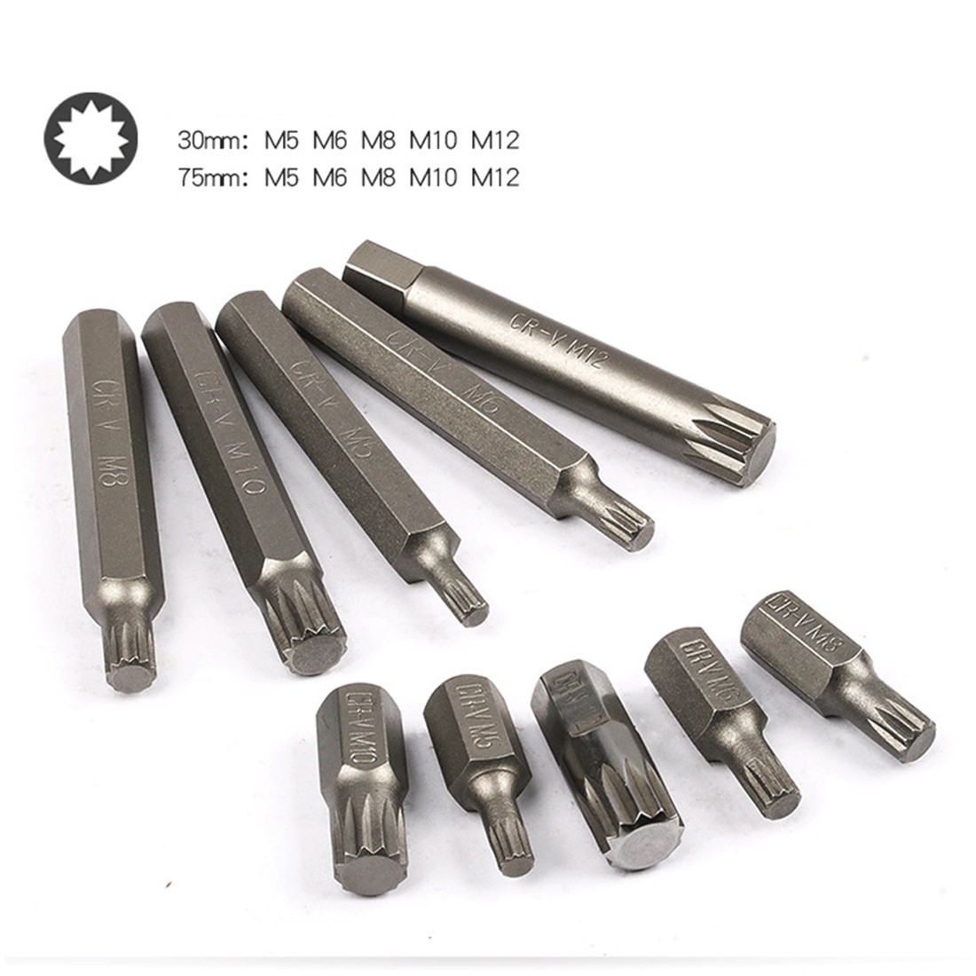 75MM SPLINE BIT: M5 - M6 - M8 - M10 - M12